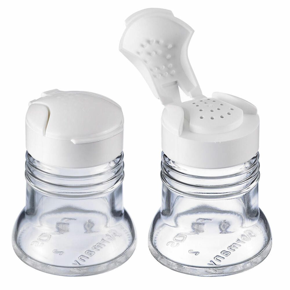 • Universalstreuer-Set bestehend aus 2 Streuern aus Glas und Klappdeckel zum Würzen beim Kochen und bei Tisch • Ideal für die Gastronomie, einsetzbar beim Party-Büffet, in der Küche und am Esstisch: Zum dekorativen Aufbewahren von Salz, gemahlenem Pfeffer oder anderen fein gemahlenen Gewürzen • Einfaches Befüllen der Glasbehälter durch große Öffnung, gleichmäßige Lochung im Streuer-Deckel für perfektes Dosieren der Gewürze, kein Verstopfen des Streukopfes dank Noppen im Deckel • Made in Germany: spülmaschinengeeignet, angenehme Haptik, geruchsneutral • Pflegehinweis: spülmaschinengeeignet
