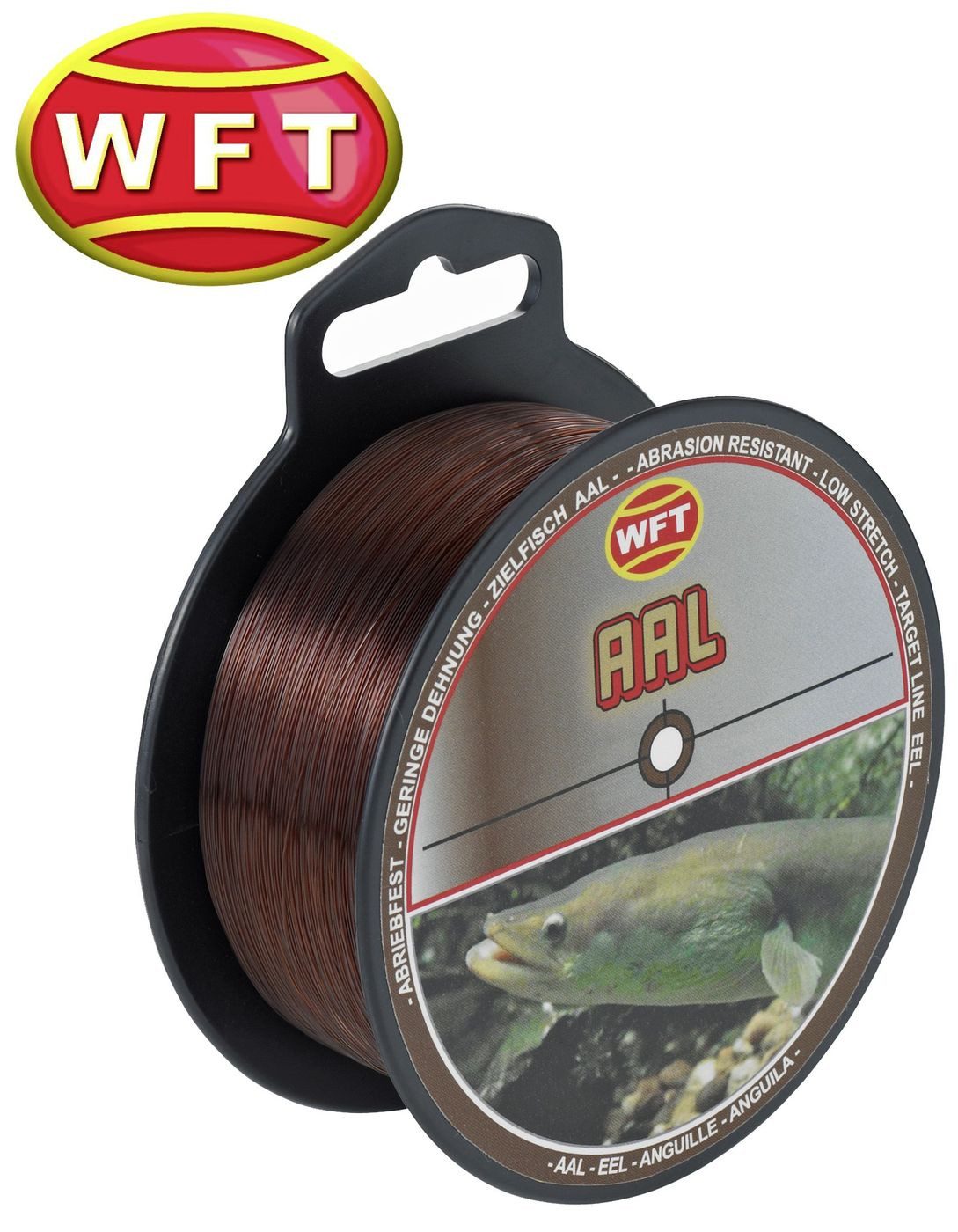 WFT Zielfisch Aal 300m 0,35mm 10,3kg braun - Bei der WFT Zielfisch Aal 300m 0,35mm 10,3kg handelt es sich um eine speziell auf das Aalangeln abgestimmte Angelschnur. Die Schnur ist dunkelbraun gefärbt und eignet sich somit für verschiedene Grundmontagen. Der Fisch kann durch die relativ geringe Dehnung bei einem Biss gut kontrolliert und aus dem Unterholz gehalten werden. Die Monoschnur weist zudem noch eine hohe Abriebsfestigkeit auf. Die Schnur kann aber auch sehr gut für andere Fischarten verwendet werden.