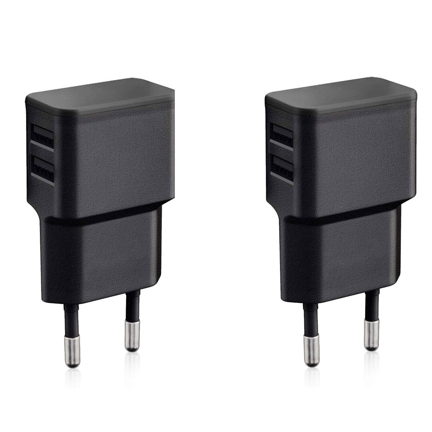 Lieferumfang | 2x Wicked Chili Dual-USB-Netzstecker / Ladegerät für EU Steckdosen mit 2 USB-Ports Maße: 71,5 x 37 x 22,4 mm, Gewicht 34g Eingang: 100-200V, 0,5 A Ausgang: 2x 5V. Total 2,4 Ampere. Farbe: weiss |