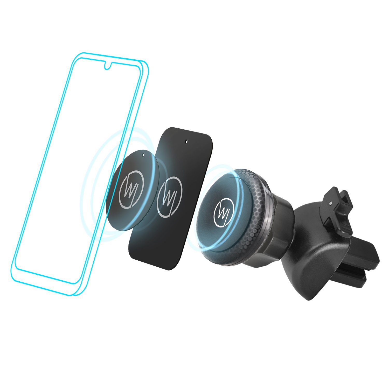 Lieferumfang: 1x Wicked Chili Smartphone Halterung für die Lüftung (aus kohlefaserverstärktem Kunststoff) mit starken Magneten und 2 Metallplättchen