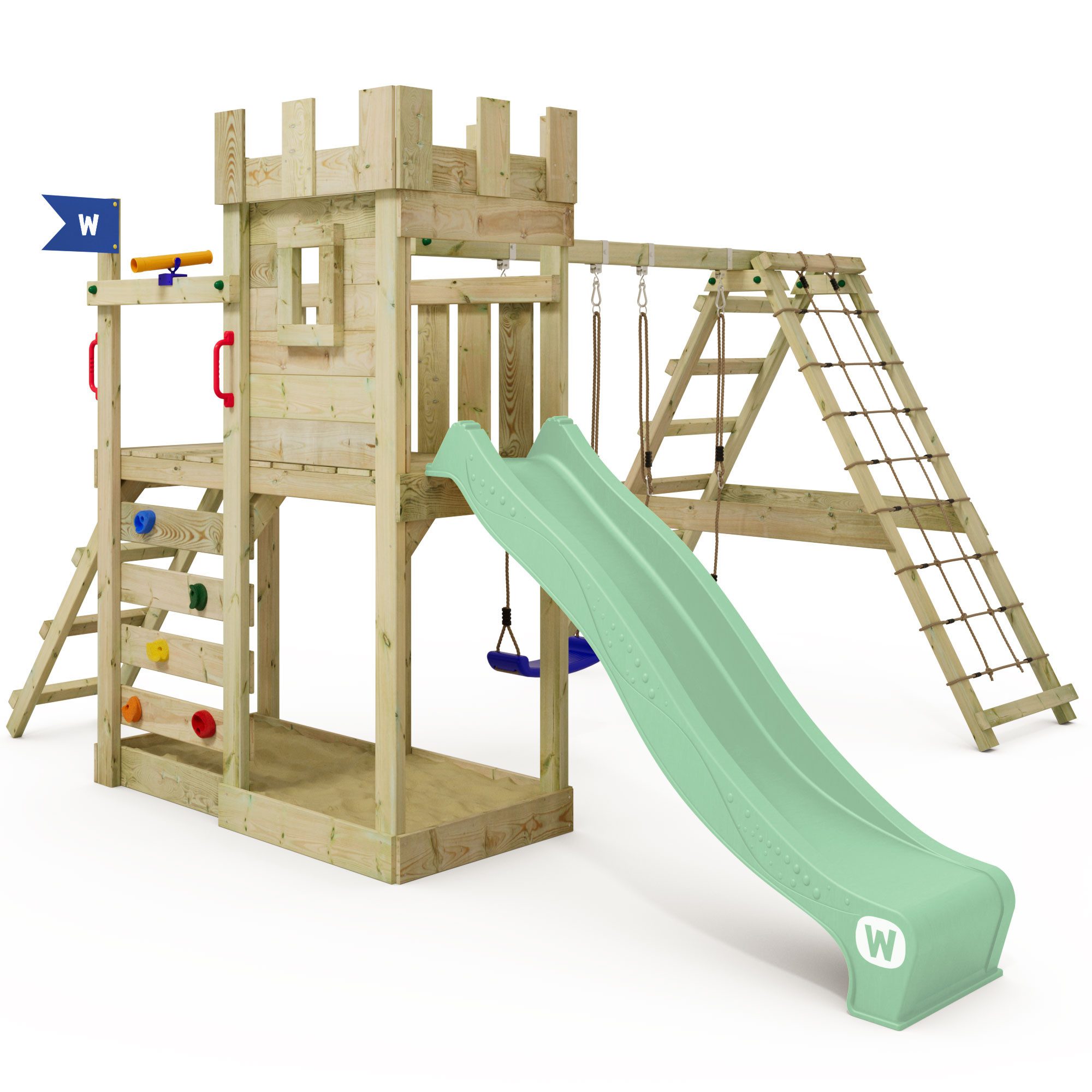 Spielturm mit Schaukel und Kletteranbau Wickey GateFlyer