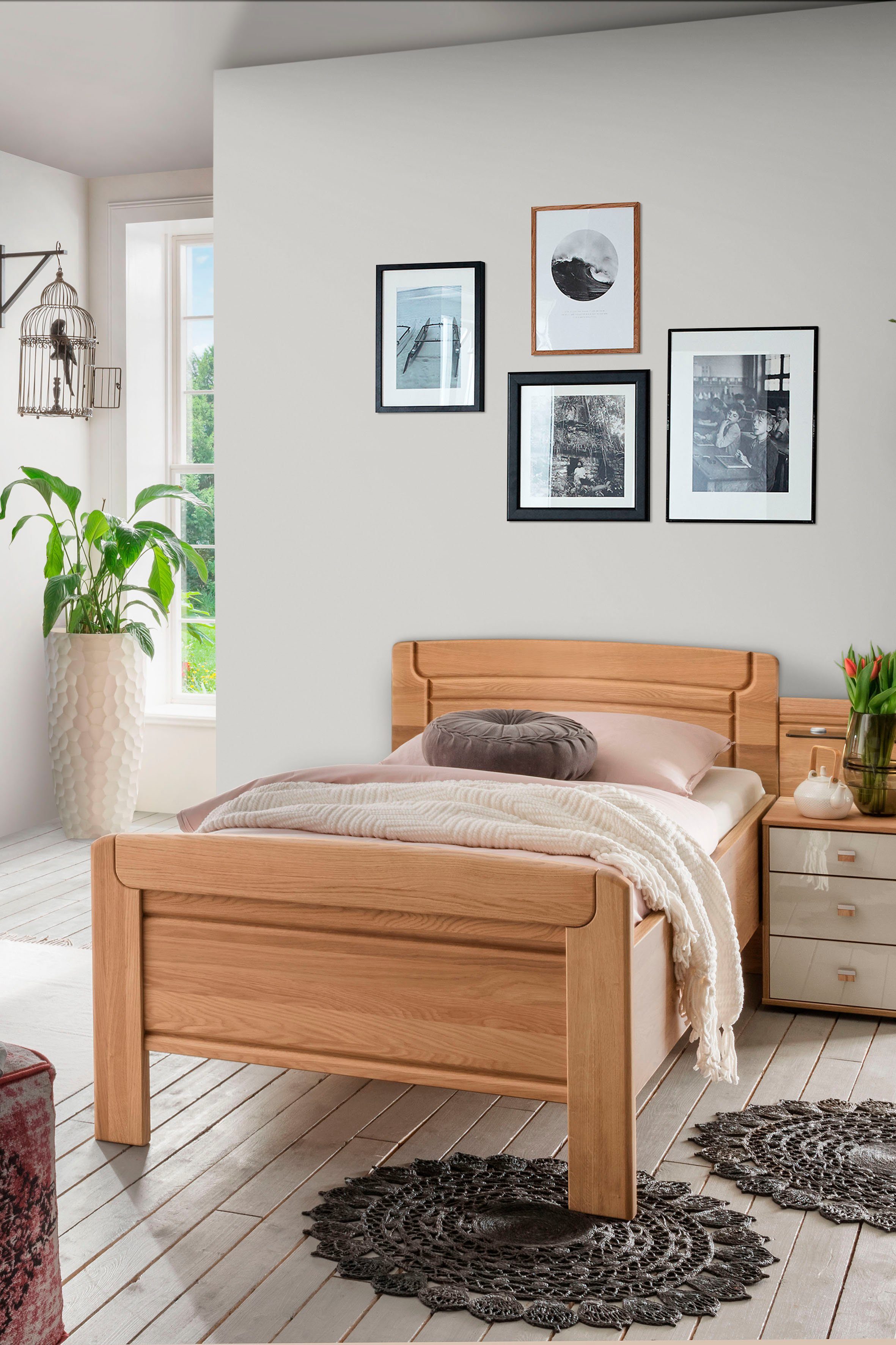 Dieses hochwertige Holzbett »Kiruna, Bettgestell, Bettrahmen, teilmassiv Eiche« von WIEMANN überzeugt mit seinem individuellen Charme und sorgt für ein gemütliches Ambiente. Das Kopfteil ist 89 cm hoch.
