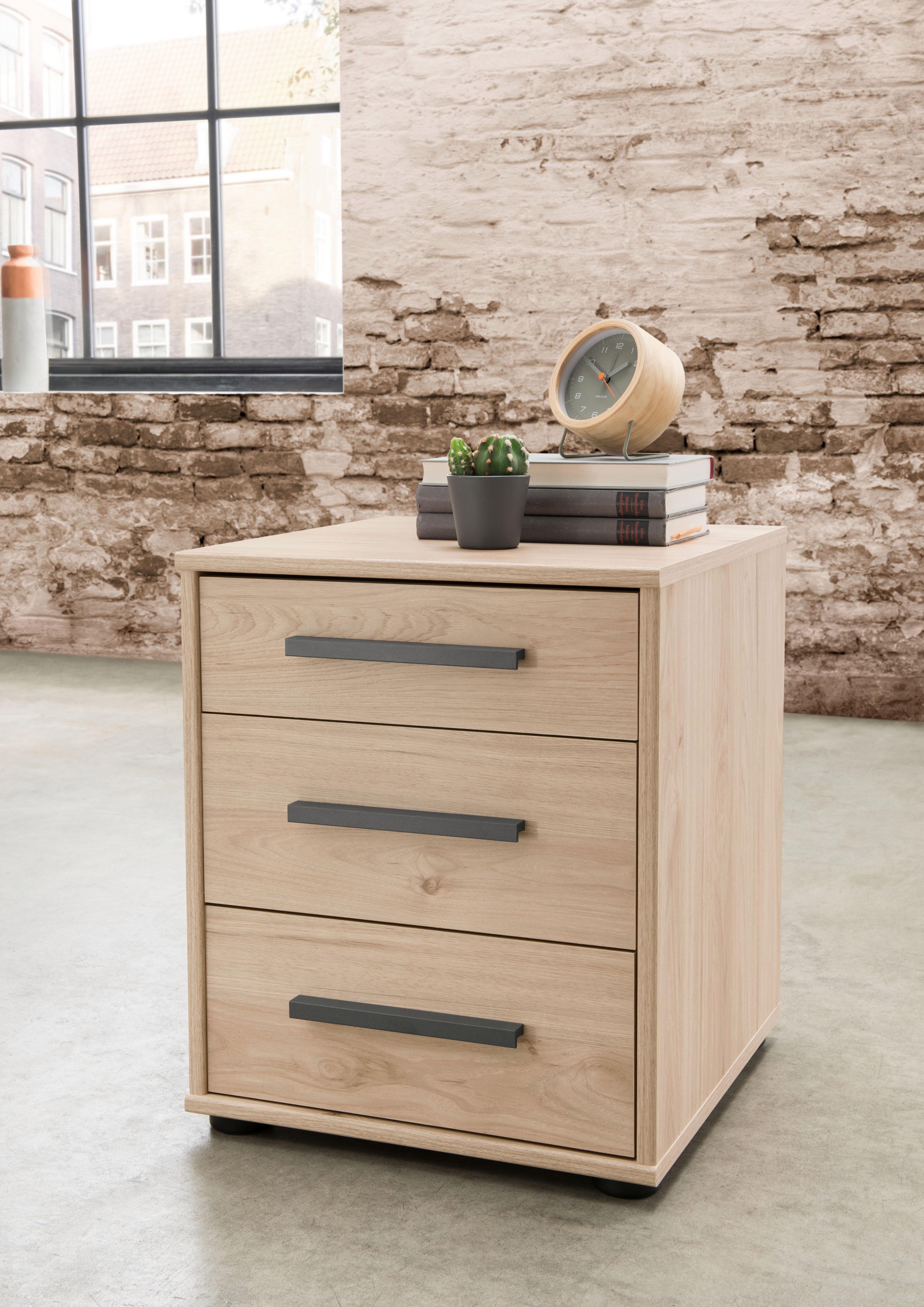 Wissenswertes | Sie benötigen viel Stauraum? Dann ist diese Nachtschrank-Варианты das Richtige für Sie! Die Nachtkommode bietet mit seinen drei Auszügen ausreichend Platz, um beispielsweise Wäsche zu verstauen, ohne dabei zu wuchtig zu wirken. Werfen Sie auch einen Blick auf die farblich abgestimmten Details: die hochwertigen und passgenauen Griffe in Schieferoptik harmonieren perfekt mit den dunklen Gleitfüßen, auf denen der Nachtschrank Halt findet. Details: