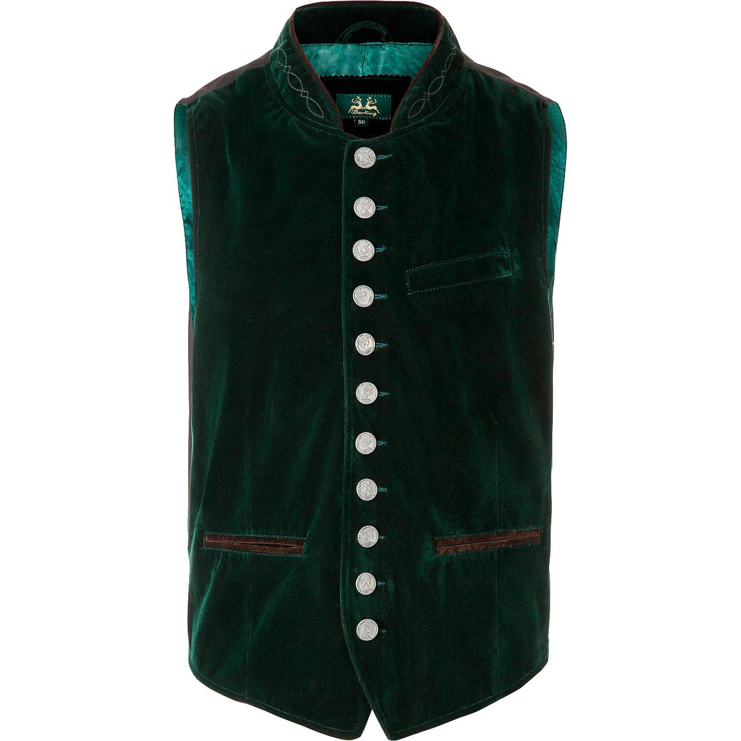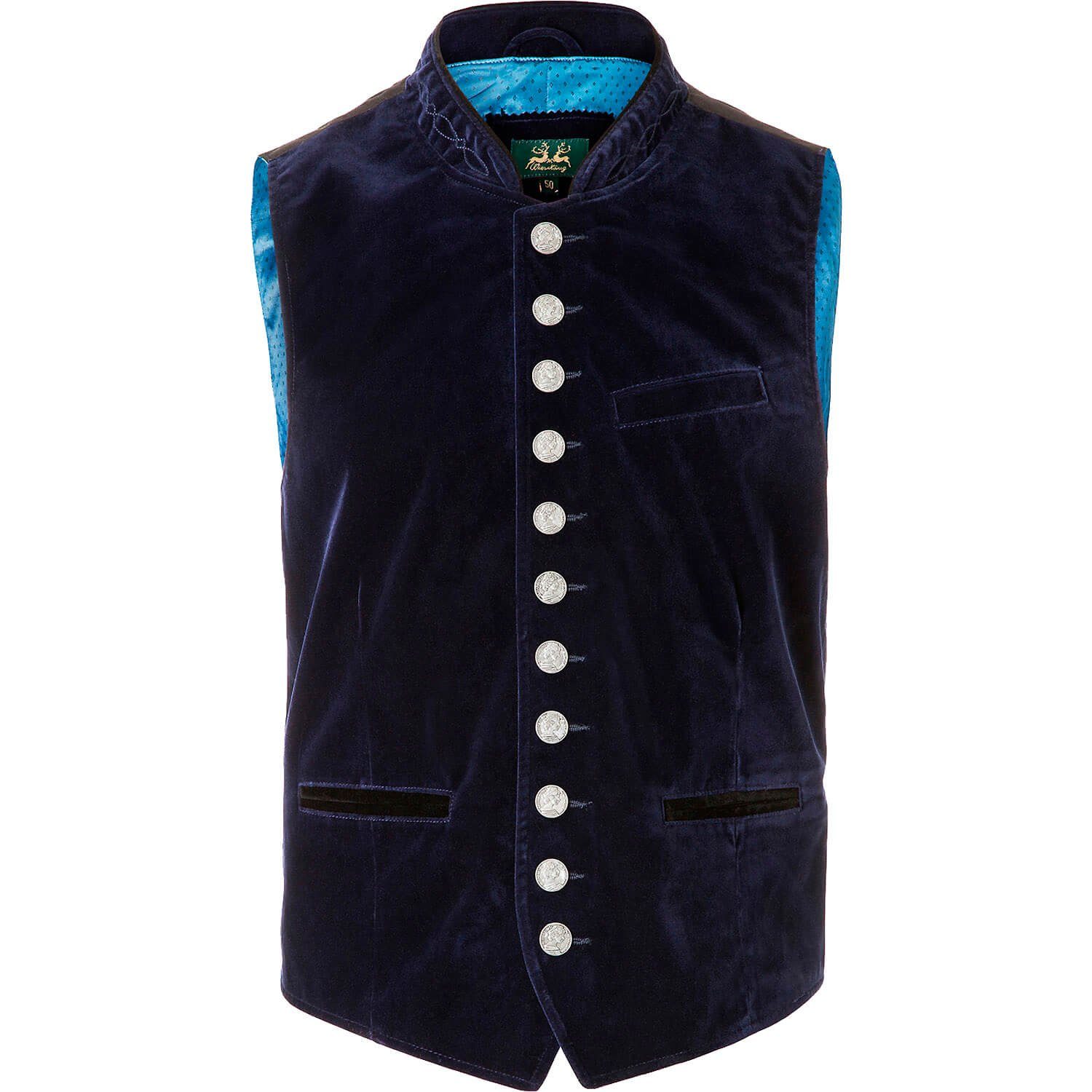 Wer Moritz von Wiesnkönig trägt, weiß, wie ein eleganter Trachten-Look geht. Samt, Münzknöpfe und ein edles Jacquard-Futter geben der Weste seinen besonderen Look.