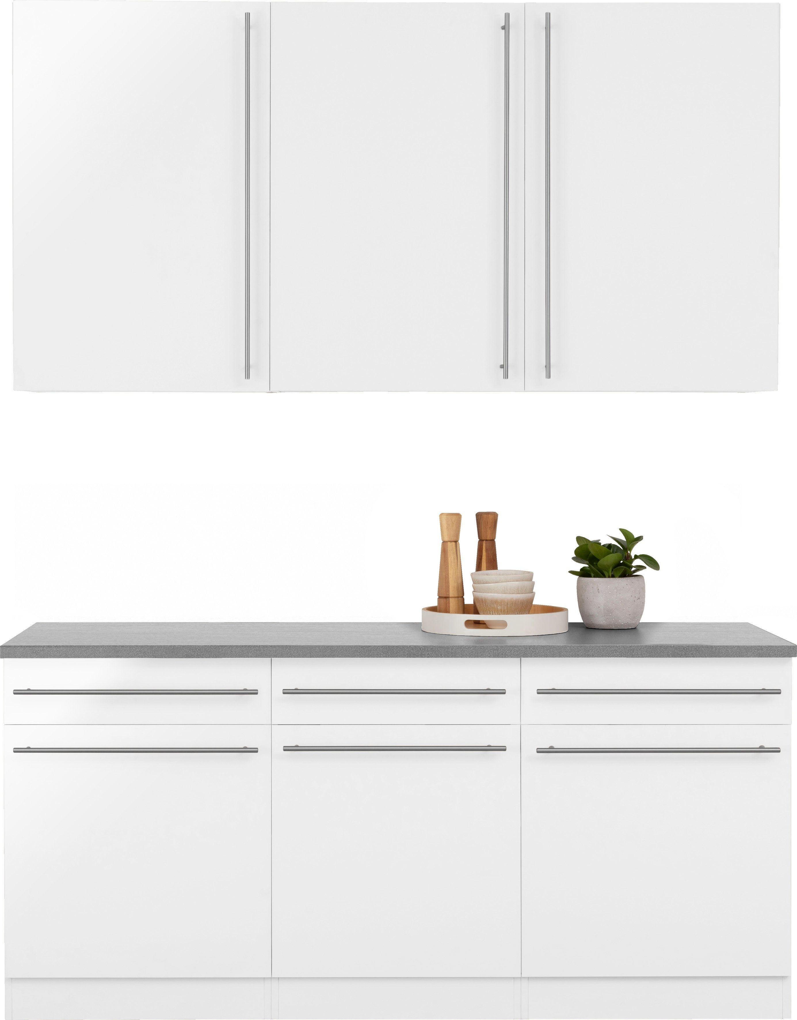 Ausstattung | Durchgehende Arbeitsplatte Einlegeböden höhenverstellbar Laufleisten der Schubkästen aus Metall Metallgriffe Sockelhöhe nicht verstellbar Türen wahlweise rechts/links montierbar |