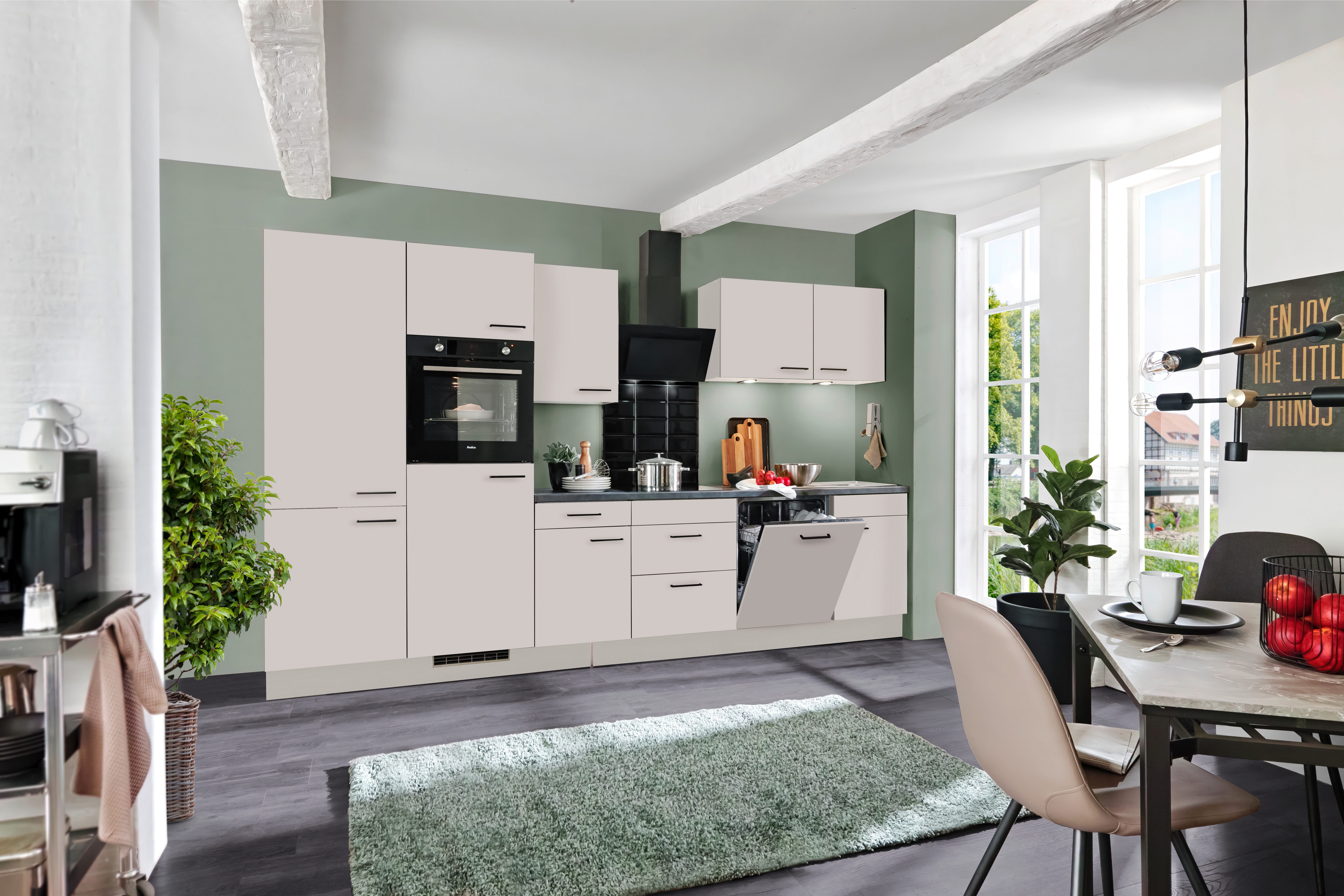 Informationen Arbeitsplatte | ohne Ausschnitte - dadurch sind die Schränke zum Teil variabel stellbar |