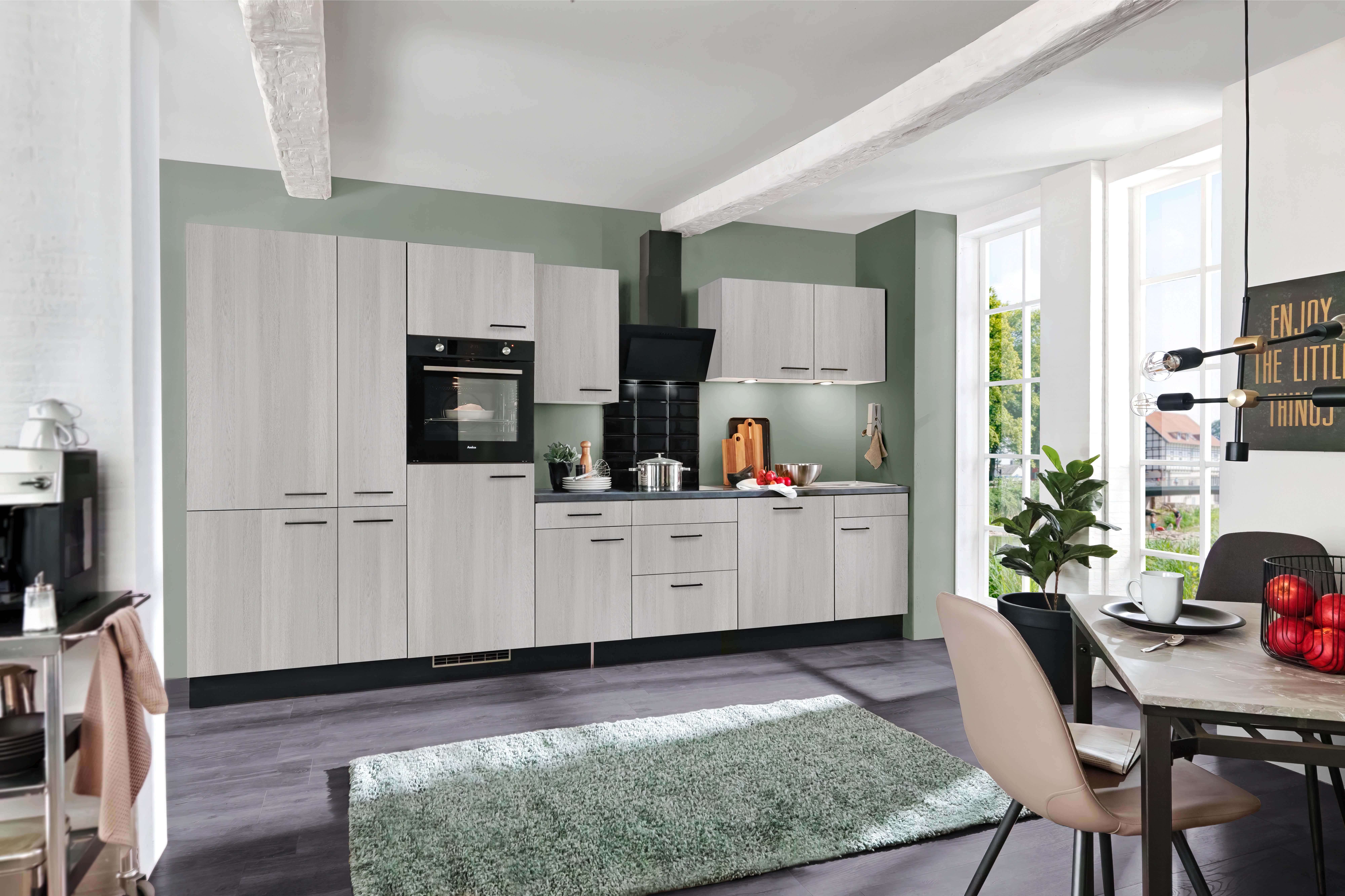 Ausstattung | Einlegeböden höhenverstellbar Höhenverstellbare Füße Laufleisten der Schubkästen aus Metall Metallgriffe Schubkästen mit Soft-Close-Funktion Türen wahlweise rechts/links montierbar inkl. Edelstahl-Einbauspüle, mit Abtropffläche mit E-Geräten weitere Informationen zu Elektrogeräten: siehe Спецификации товара (на немецком) |