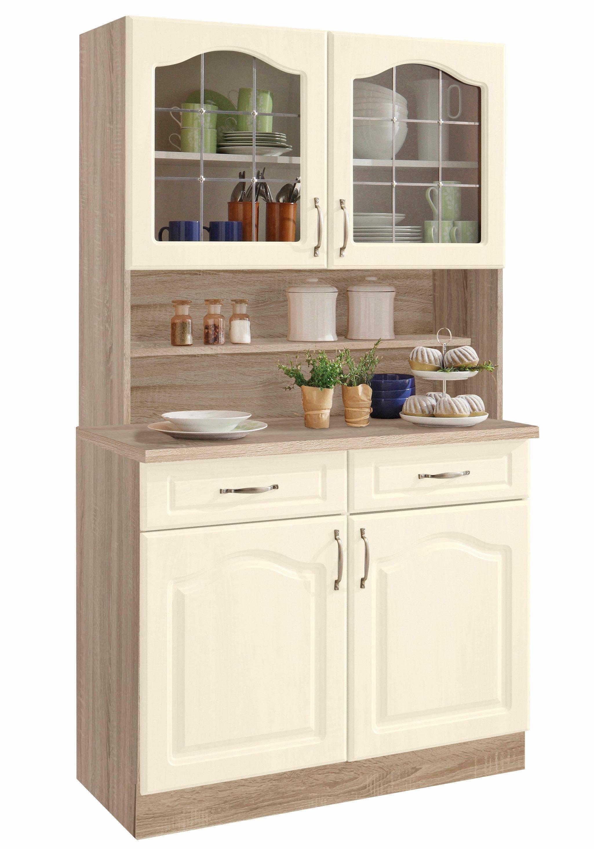 Ergänzende Maßangaben | Arbeitshöhe inkl. Arbeitsplatte: ca. 85 cm Höhe der Türen: ca. 56,5 cm Höhe des offenen Faches in der Mitte: ca. 38,5 cm Maße des oberen Teils des Buffets (B/T/H): ca. 100/35 (inkl. Türen)/95 cm Schubladenzargenhöhe: ca. 7 cm Sockelhöhe (ca. 10 cm) nicht in der Höhe verstellbar Tiefe der Ablagefläche (offenes Fach): ca. 23,5 cm |