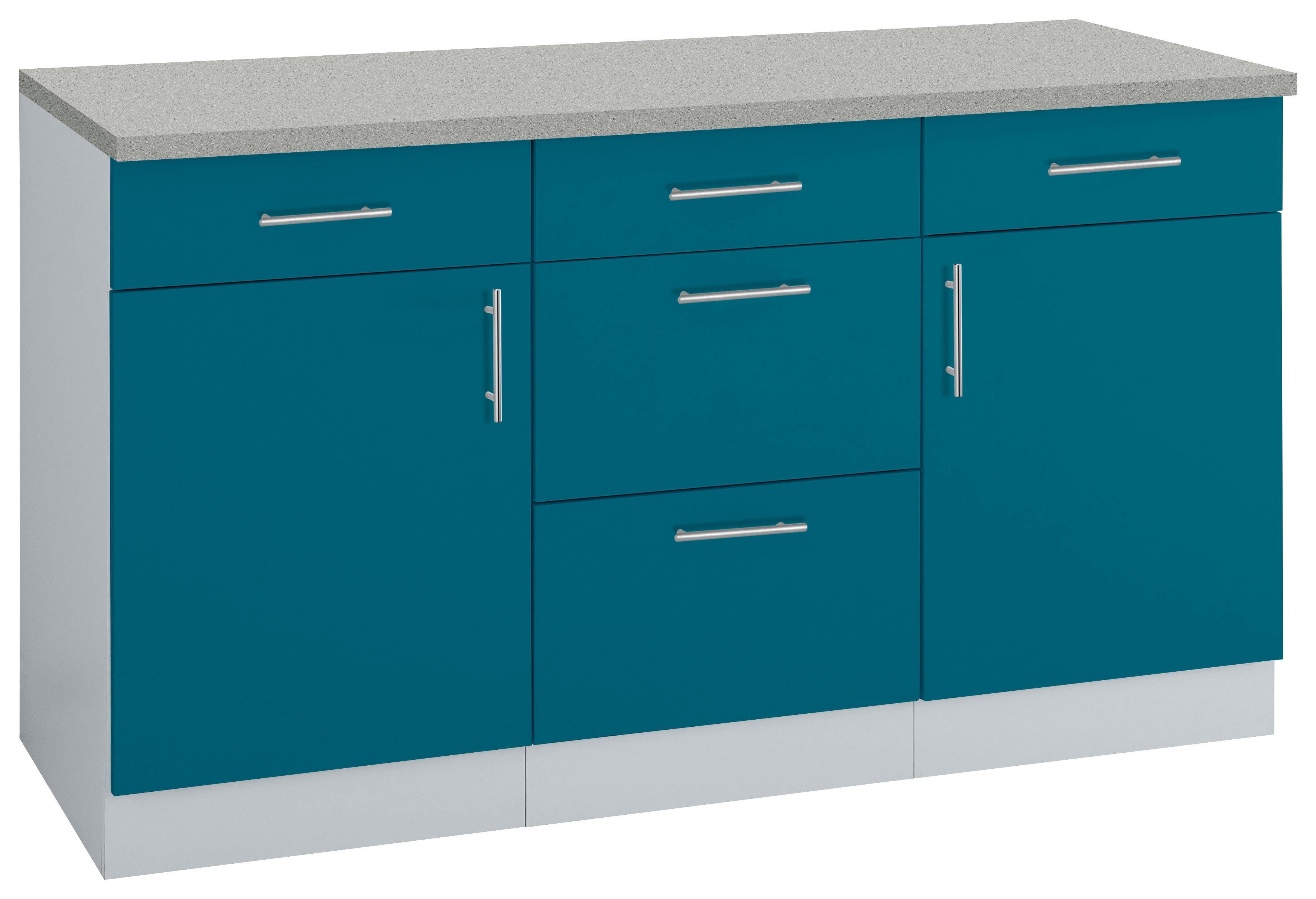 Farbe | Front: Ozeanblau, Korpus: Steel Grey, Arbeitsplatte: Canvas Grau |