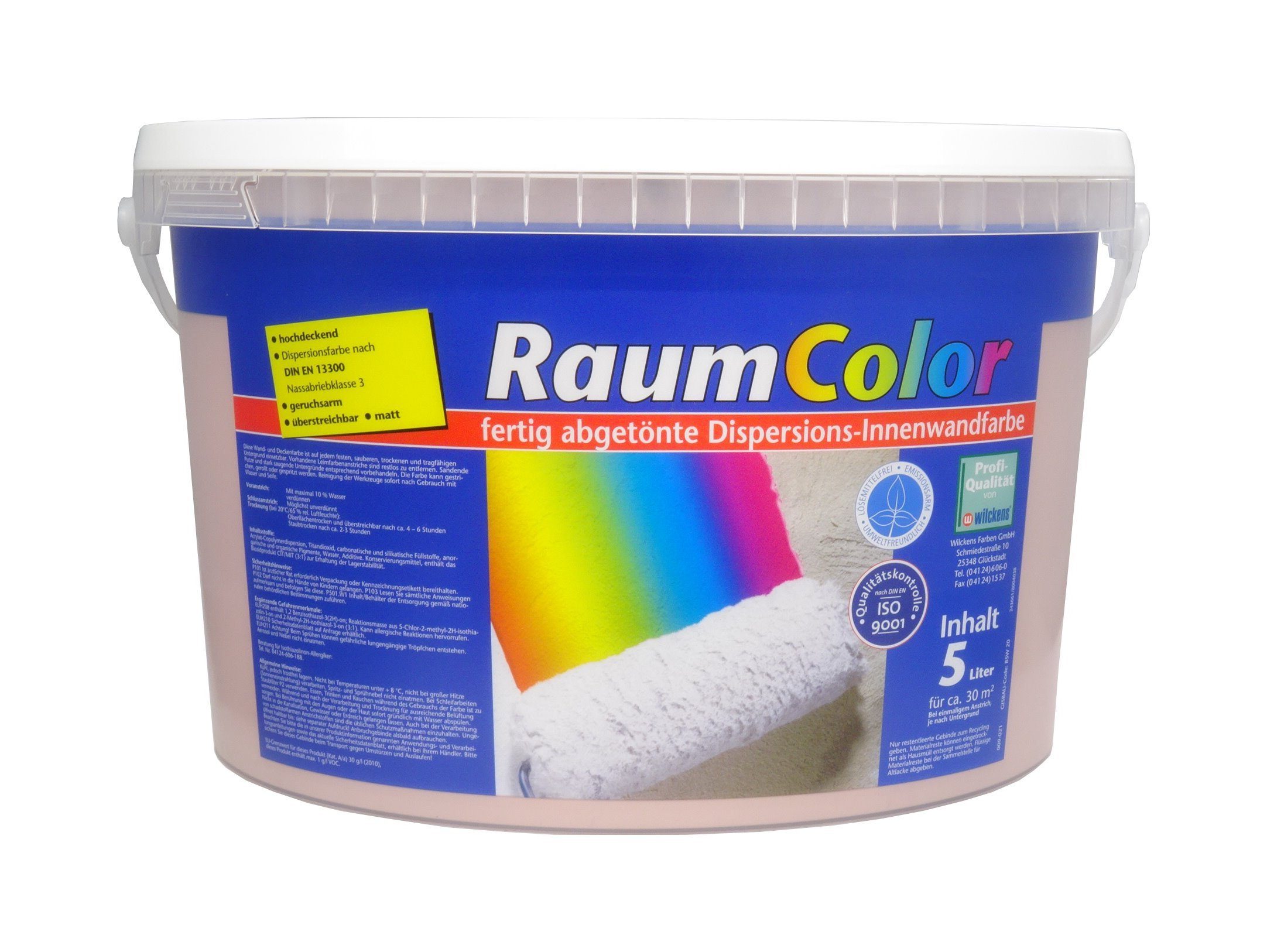 Raumcolor ist eine fertig abgetönte, hoch deckende Wand- und Deckenfarbe in Handwerkerqualität. Sie ist leicht zu verarbeiten, spritzarm bei der Rollenapplikation, Airless spritzbar und wasserdampfdiffusionsfähig. Gestrichene Räume können schnell wieder bewohnt und genutzt werden, da weder bei der Applikation, noch bei der Trocknung, Geruchsbelästigungen durch Emissionen auftreten. Besonders gut geeignet ist die Dispersion auf Putzflächen aller Art, für Dämm- und Dekorationsplatten, sowie für Raufaser.