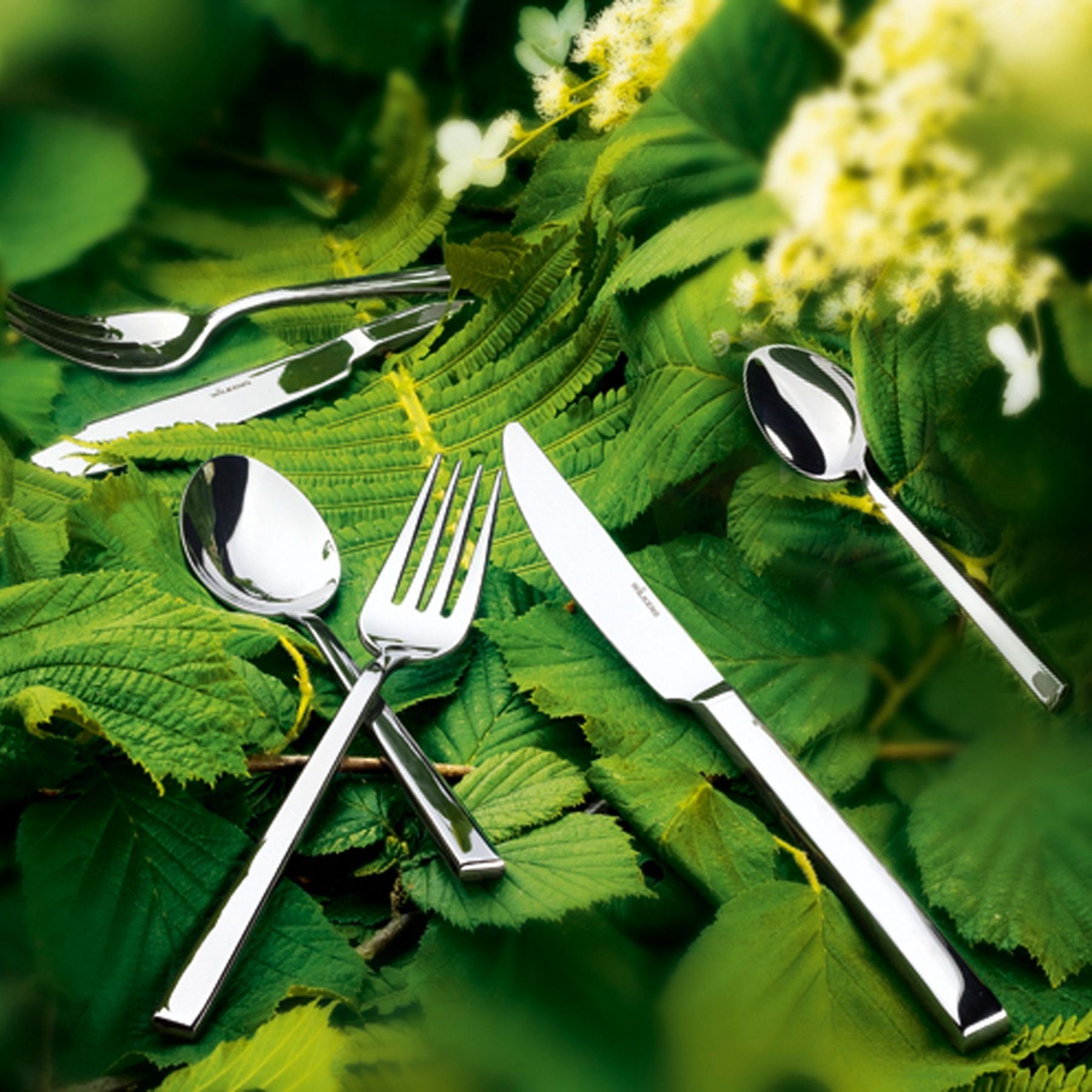 Wilkens Besteck Set CANTONE in 18/10 Edelstahl poliert 62-tlg. Besteckgarnitur Das schlichte Design ist inspiriert von der zeitgenössischen Architektur und der des Art-déco. Die kantigen Griffe mit den abgerundeten Enden bilden zusammen mit dem besonderen satinierten Finish der Oberfläche die herausragenden Merkmale des Entwurfs Cantone. Gestaltung: Kerstin Nolte, 2000 Auszeichnung: WhiteStar, 2008 Edles Besteckset von WILKENS in Edelstahl für 6 Personen: Je 6 Messer (Hohlheft), Gabel, Löffel in Menügröße; Messer, Gabel, Löffel für Dessert; Kaffeelöffel, Espressolöffel, Kuchengabel, 2 Fleischgabel, 3 Vorlegelöffel, Saucenlöffel, Tortenheber, Zuckerlöffel.