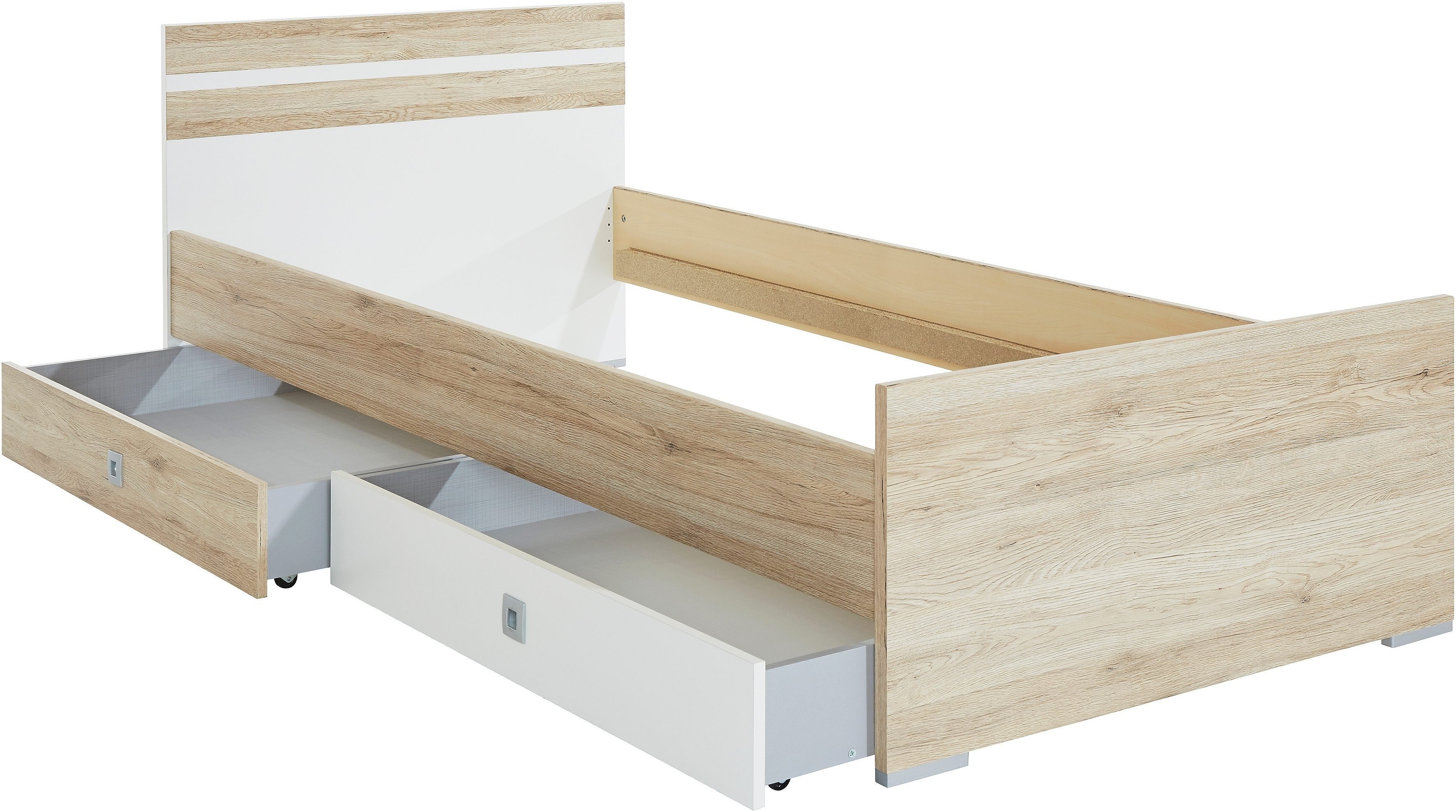 Die Kleinen haben mit diesem Bett »joker, gäste« von Wimex eine bequeme Schlafmöglichkeit im kindgerechtem Design. Das Kopfteil des Bettes hat eine Höhe von 71 cm. Mit 17,5 cm Bodenfreiheit kann die Fläche unterhalb des Bettes einfach gewischt oder gesaugt werden. Hergestellt wurde das Produkt in Deutschland, das für hohe Qualität steht. Das Produkt ist Teil der Joker-Serie. Впередe Artikel aus der Serie lassen sich gut zum Bett kombinieren.