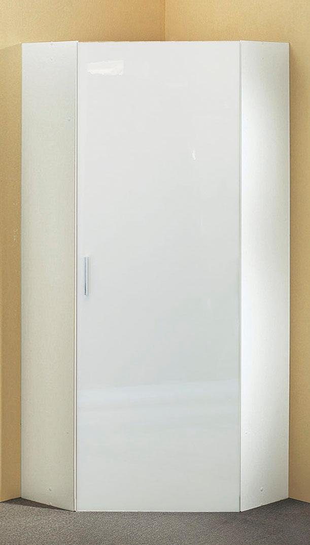 Wissenswertes | Modernes Schrank-Programm »Malta« mit weißen Hochglanzfronten. Praktische Ecklösung. Inneneinteilung siehe Piktogramme. Pflegeleichte Kunststoffoberfläche. Innendekor Leinen grau. Beschläge und Kleiderstangen aus Metall. Chromfarbene Kunststoffgriffe. Schenkelmaße: 83/83 cm. Höhe 185 cm. Details: