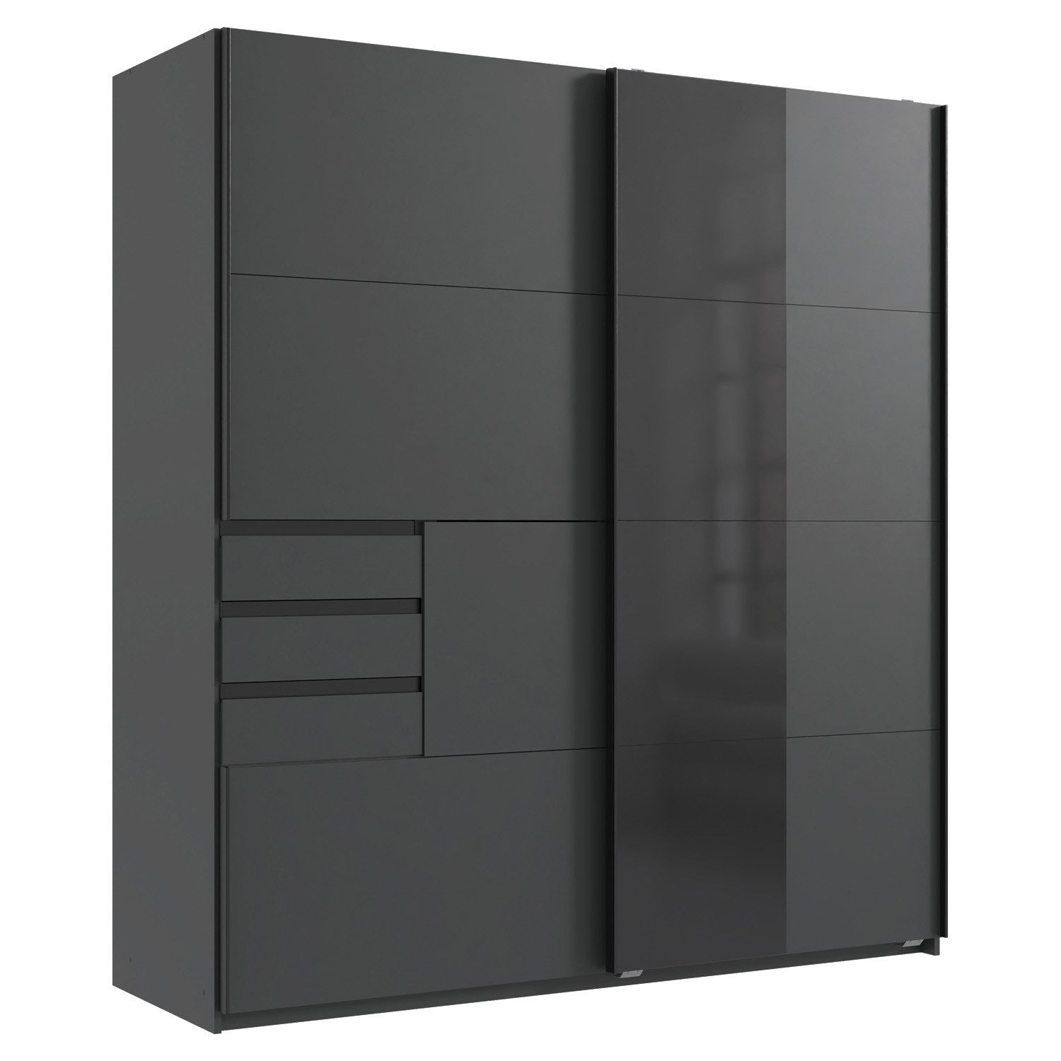 Lieferumfang | 1 Schwebetürenschrank mit 2 Türen und Spiegelteilfront, 3 Schubladen, 1 Kleiderstange und 4 Einlegeböden. Ohne Passepartout |