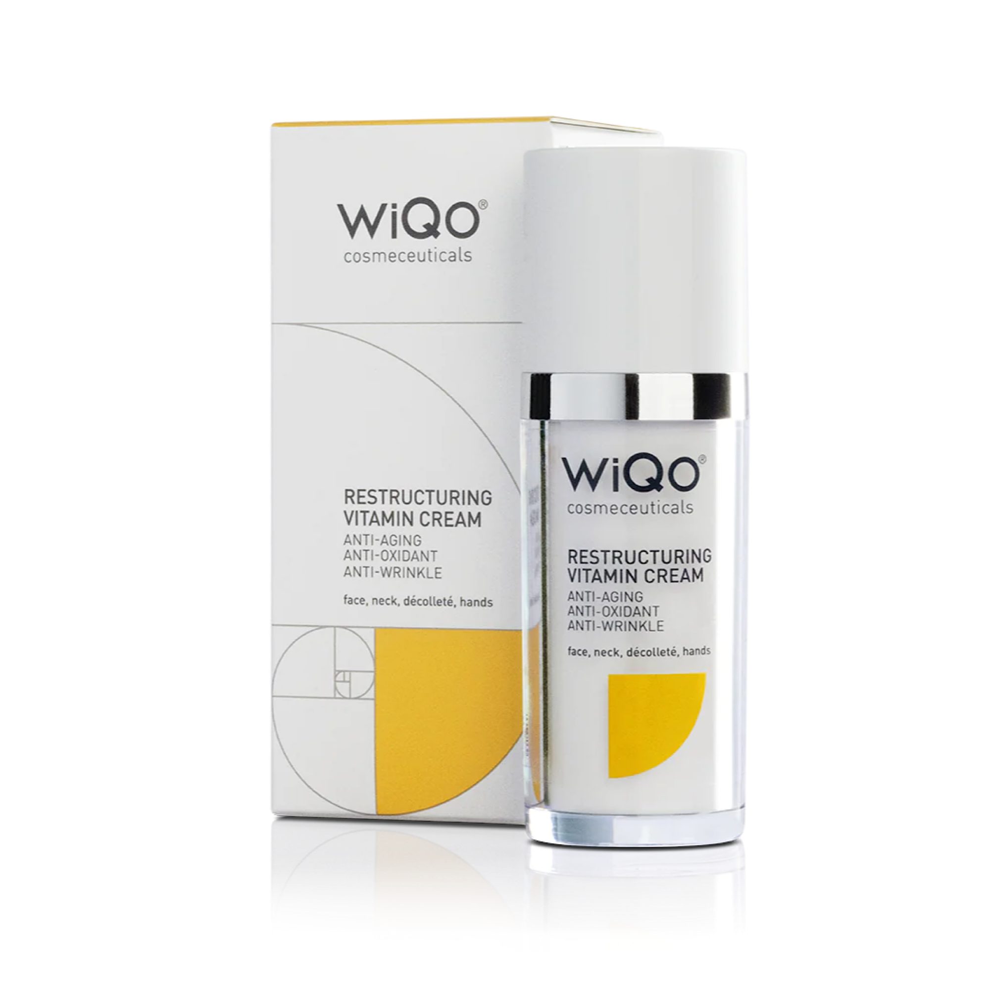 Anwendung | Die WiQo Restructuring Vitamin Cream muss einmal täglich auf Gesicht, Hals, Dekolleté und Hände aufgetragen werden, allein oder in Verbindung mit anderen Produkten der WiQo-Linie für den Hausgebrauch. Verwenden Sie die Creme drei Monate lang, setzen Sie sie dann drei Monate lang ab und setzen Sie den Zyklus dann fort. |