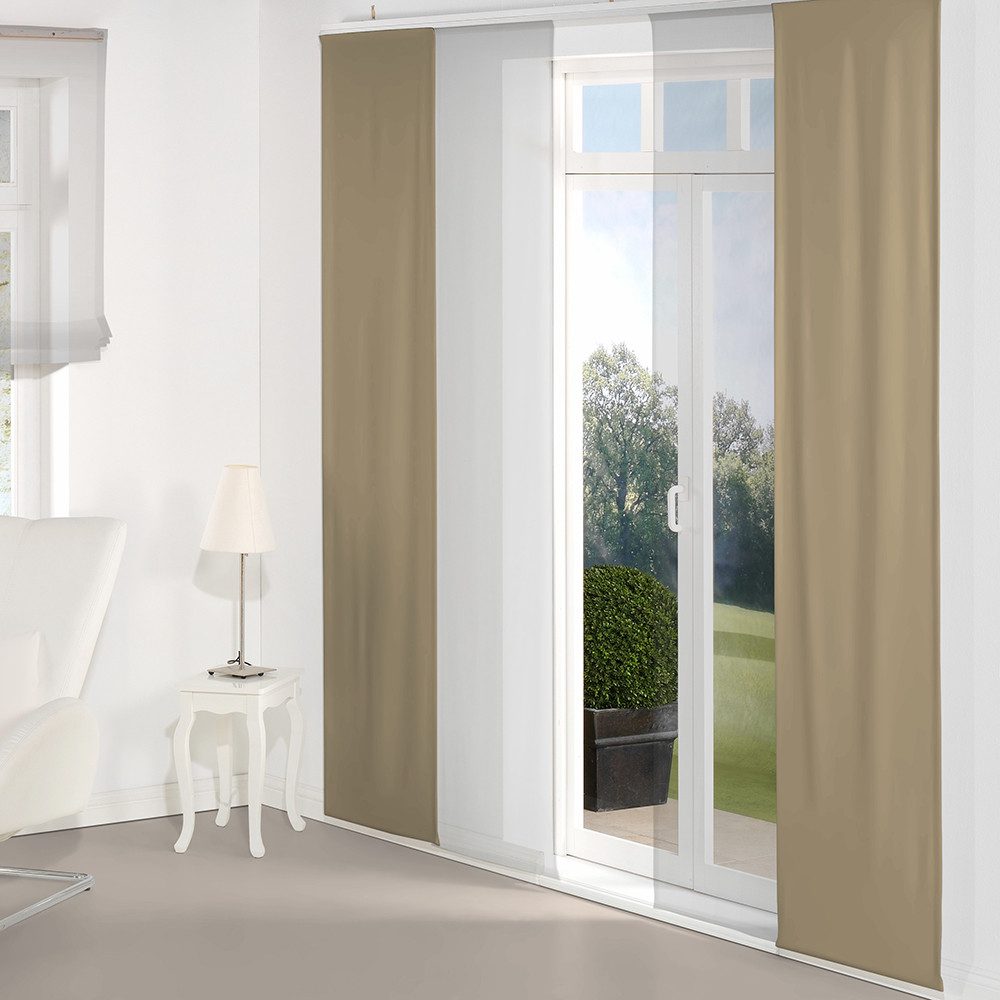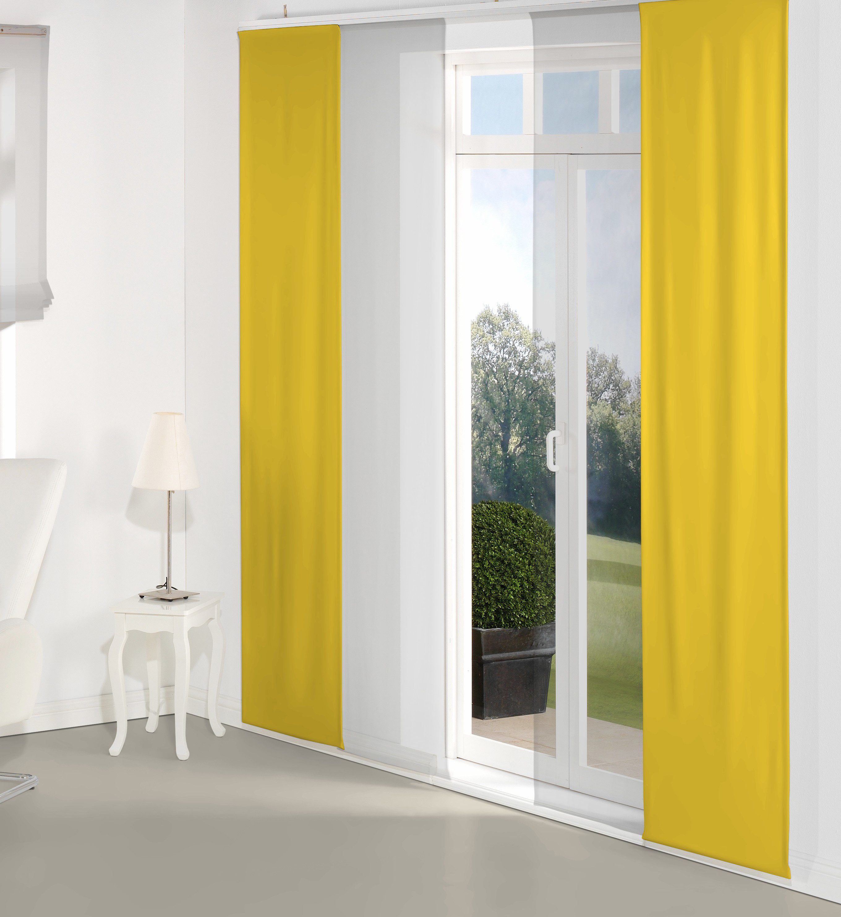 Hinweis Dekoration | Die angegebenen Maße sind die fertig dekorierten Maße. Eine Schiebegardine ist eine schmale, glatt hängende Stoffbahn, die sich sowohl als Sichtschutz als auch zur Raumteilung eignet. Durch die Schiebetechnik sind Schiebegardinen sehr flexibel einsetzbar. |