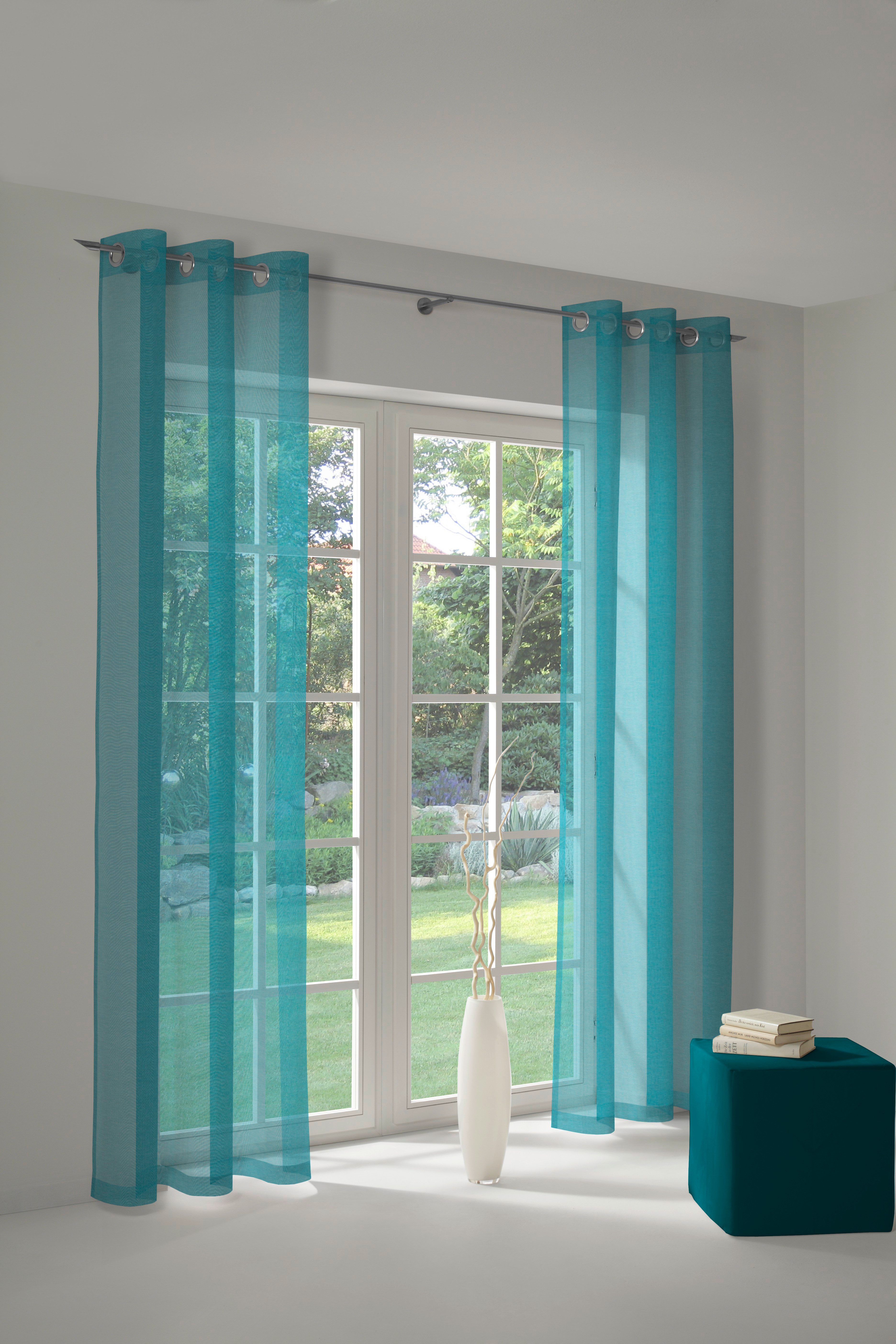 Der Vorhang fällt schön und ist gerade richtig, wenn man nicht blickdicht und auch nicht transparent will!