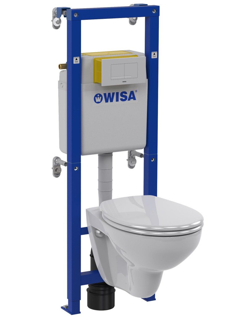Produktdetails: Spülrandloses Wandtiefspül-WC | inkl. Vorwandelement | Mengenteiler 3/6 Liter | Bedienplatte weiß | WC-Sitz mit Absenkautomatik | mit Schallschutzset und allen Anschlussmaterialien | nachrüstbar auf elektronische Bedienung |