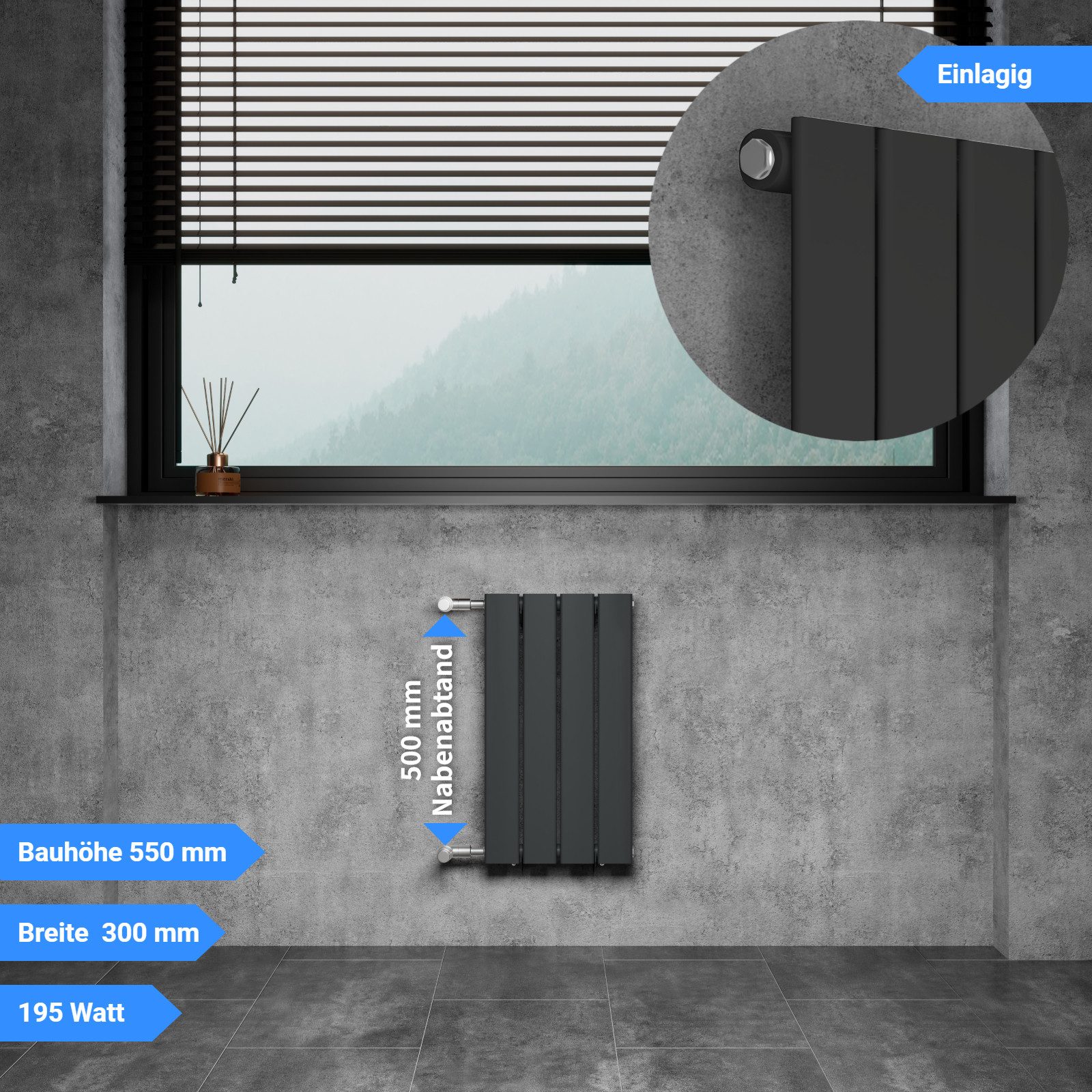 1 x Designheizkörper mit Montageset inkl. Wandhalterungen, Schrauben, Dübeln, Entlüftungsventil und Blindstopfen