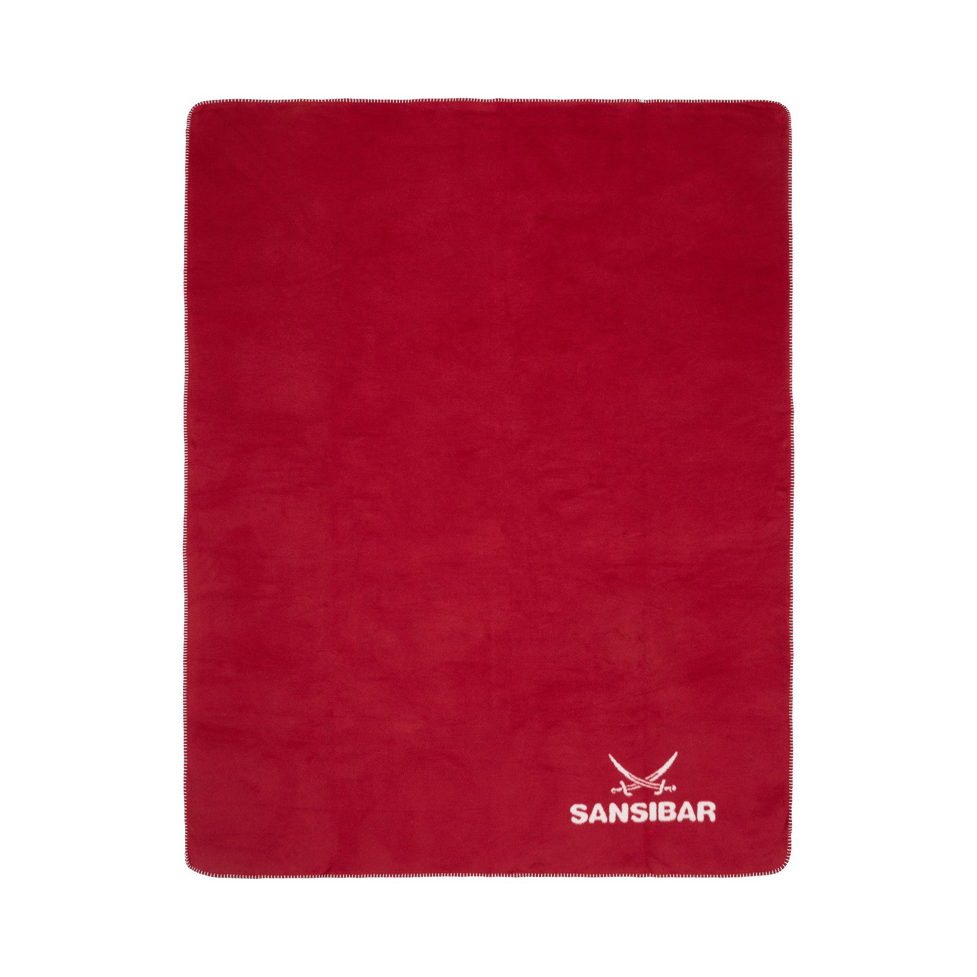 Die Farbe der Wohndecke ist sehr schön. Die rote Farbe mit der weißen Schrift leuchtet und wirkt sehr elegant!