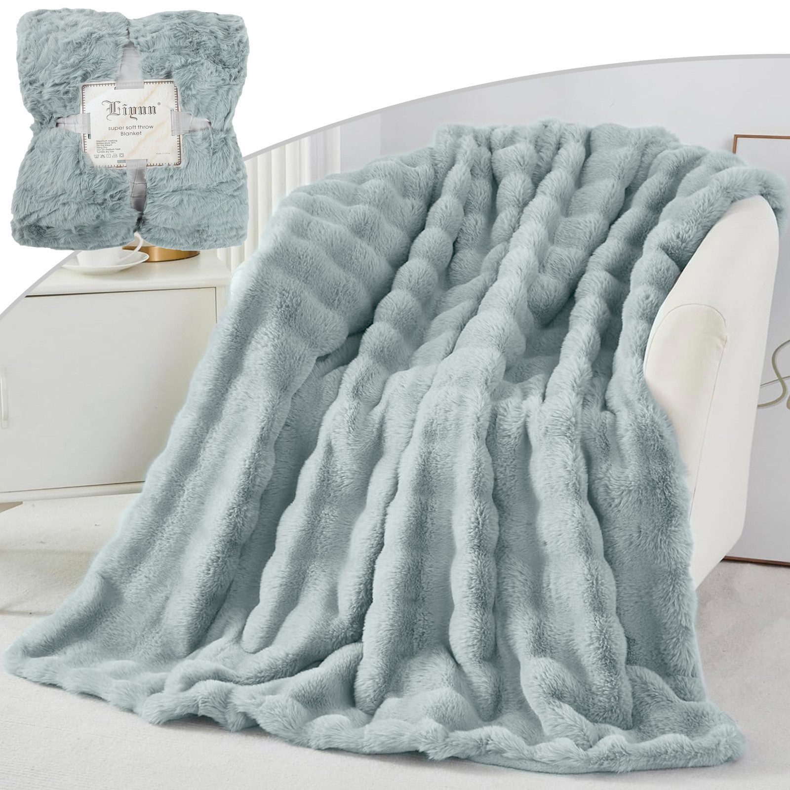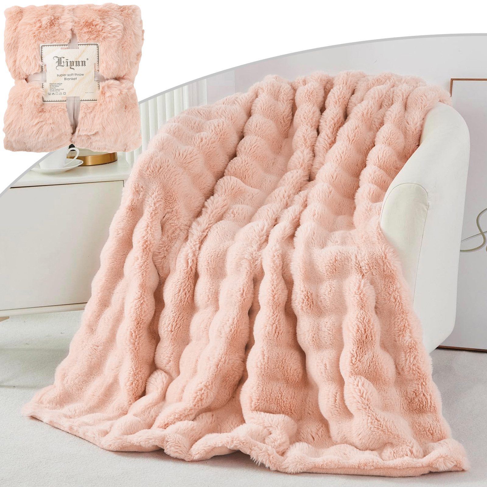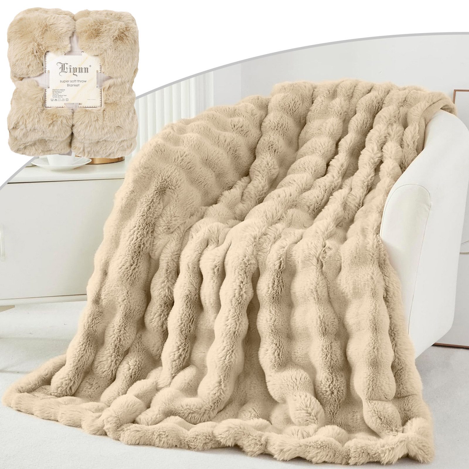 Bitte beachten Sie: Nach Erhalt des Pakets kann die gewellte Form der Decke aus Transportgründen vorerst nicht angezeigt werden. Sie müssen das Fell selbst kämmen und warten, bis es sich langsam erholt. Vielen Dank für Ihr Verständnis