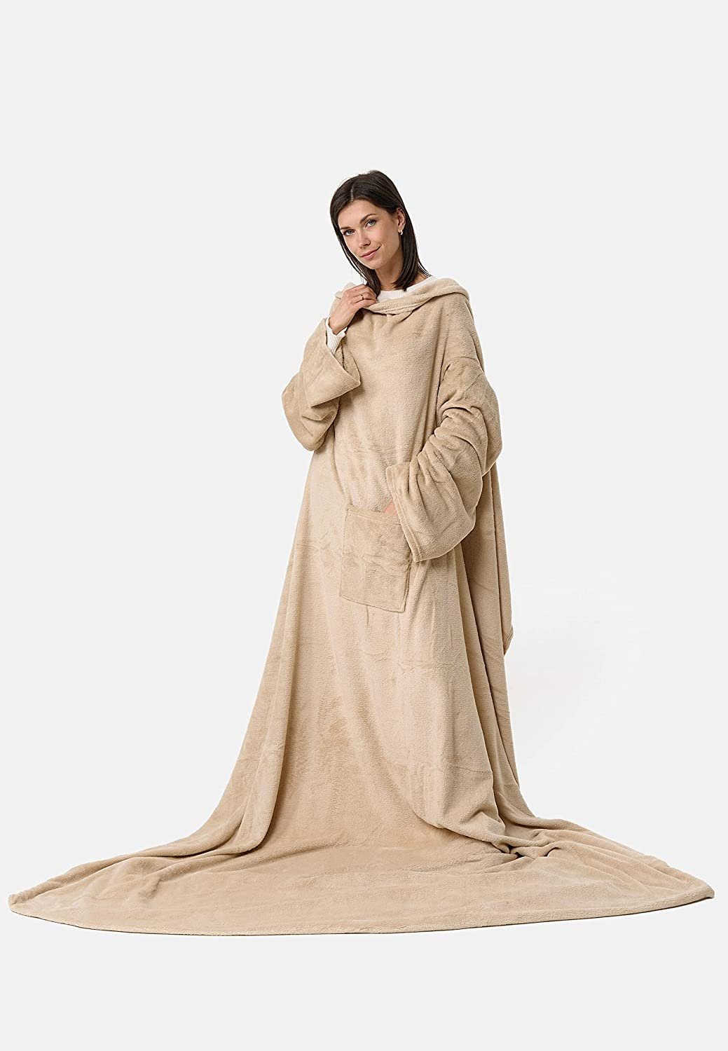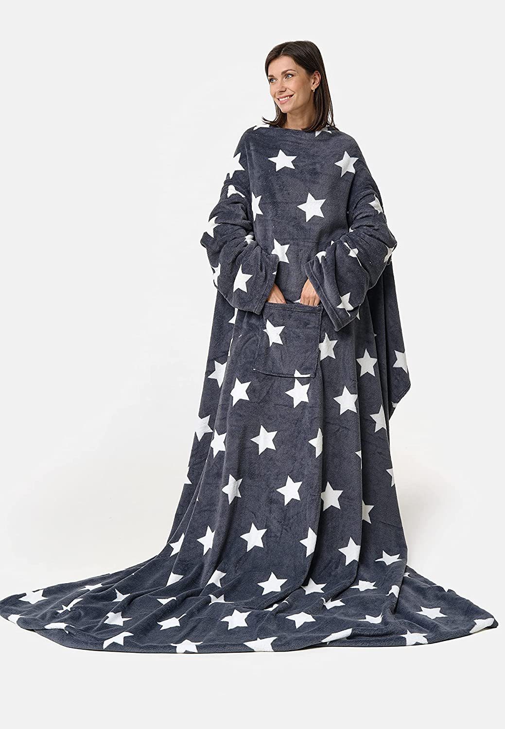 Das Design von dieser Decke ist von vorne bis hinten genial durchdacht. Von 2 Ärmeln bis hin zur Brusttasche mit integrierter Handytasche steht Ihnen nun nichts mehr im Weg, um den Tag bei einer warmen Tasse Tee ausklinken zu lassen oder auch mit einer heißen Tasse Kaffe morgens zu beginnen.