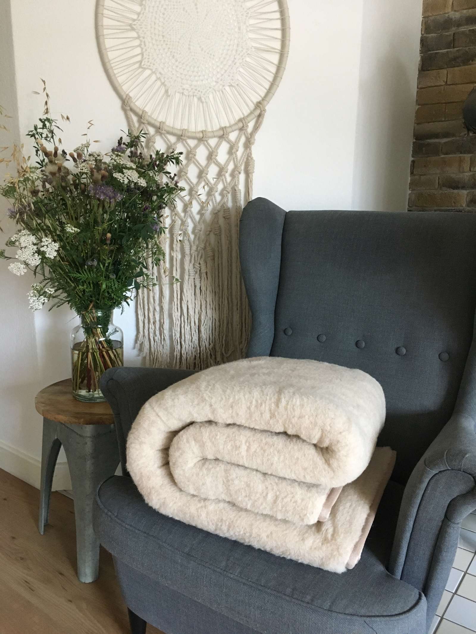 1. Falten Sie die Wolldecke zu einem Rechteck.