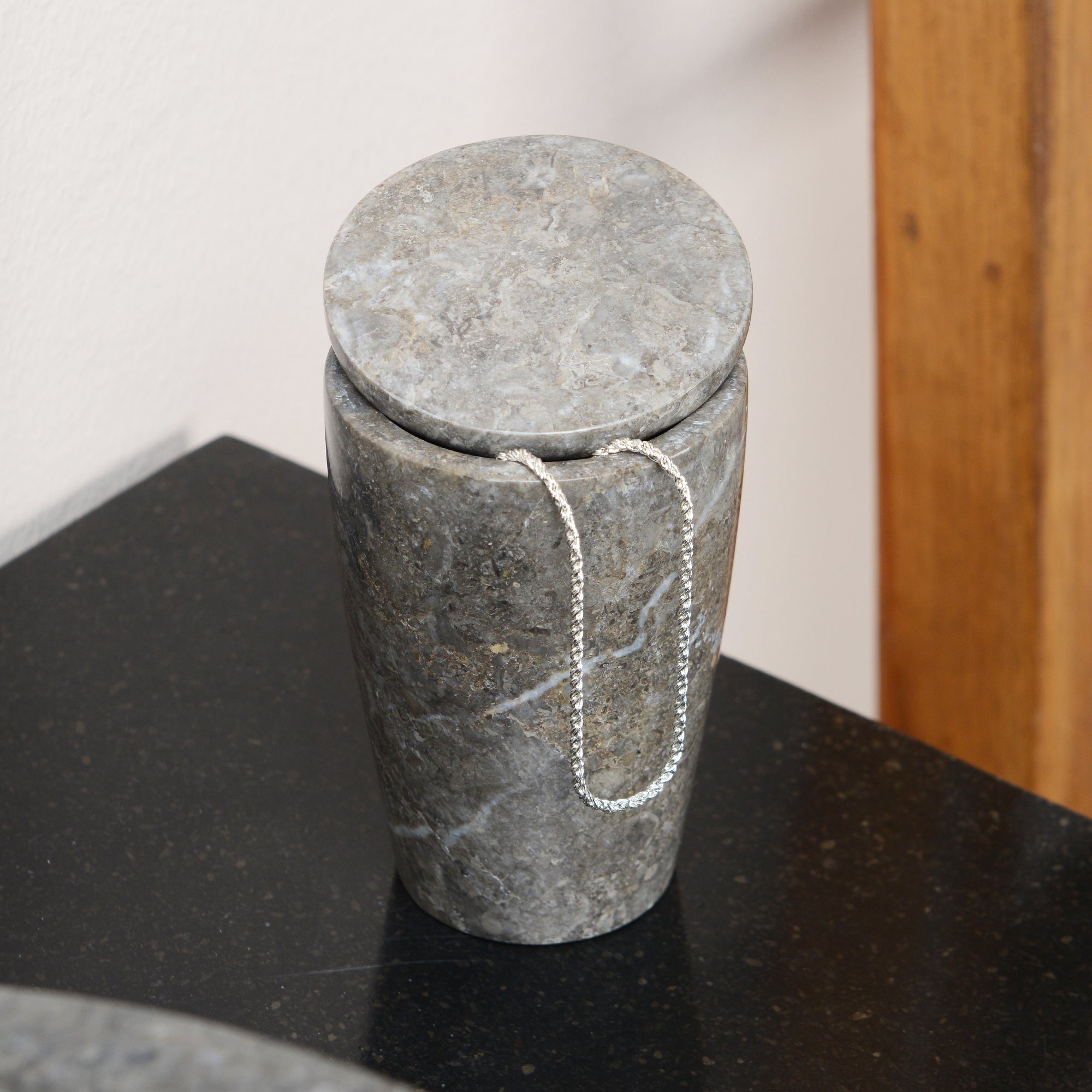 Diese schöne Aufbewahrungsdose mit elegantem Deckel ist aus indonesischem Marmor.