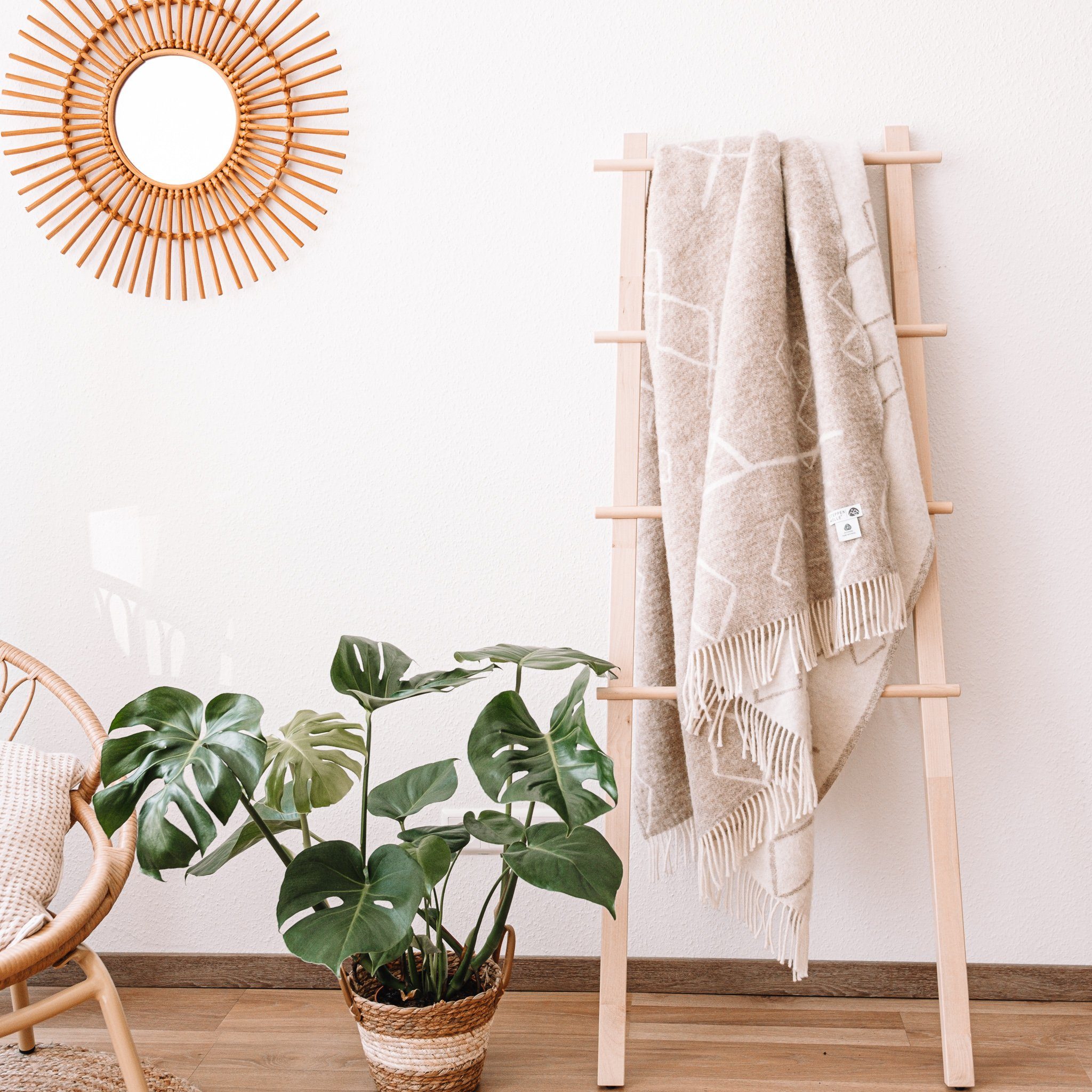 100% REINE SCHURWOLLE - Für unsere farbenfrohen Wolldecken verweben wir ausschließlich mulesingfreie & zertifizierte Schurwolle aus Neuseeland.