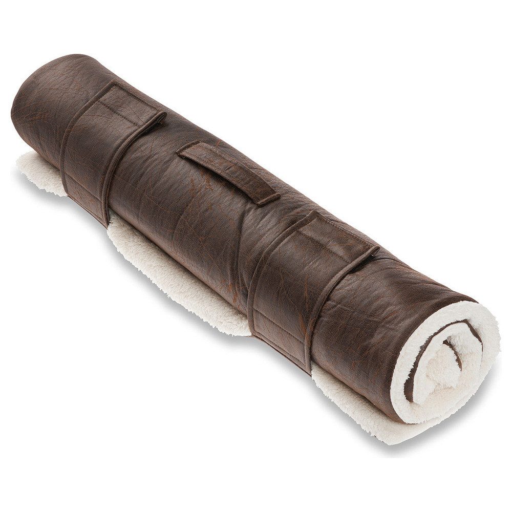 Die Vintage Vagabund Reisedecke lässt sich zu einem handlichen Format aufrollen und ist innerhalb weniger Sekunden zu einem bequemen Ruheort ausgebreitet. Ausgestattet mit einem praktischen Tragegriff, ist sie leicht zu transportieren, egal wohin das Abenteuer Sie und Ihren Vierbeiner führt. Gut zu wissen: Um die Klettverschlüsse während der Benutzung vor Schmutz zu schützen, kann man diese einfach schließen.