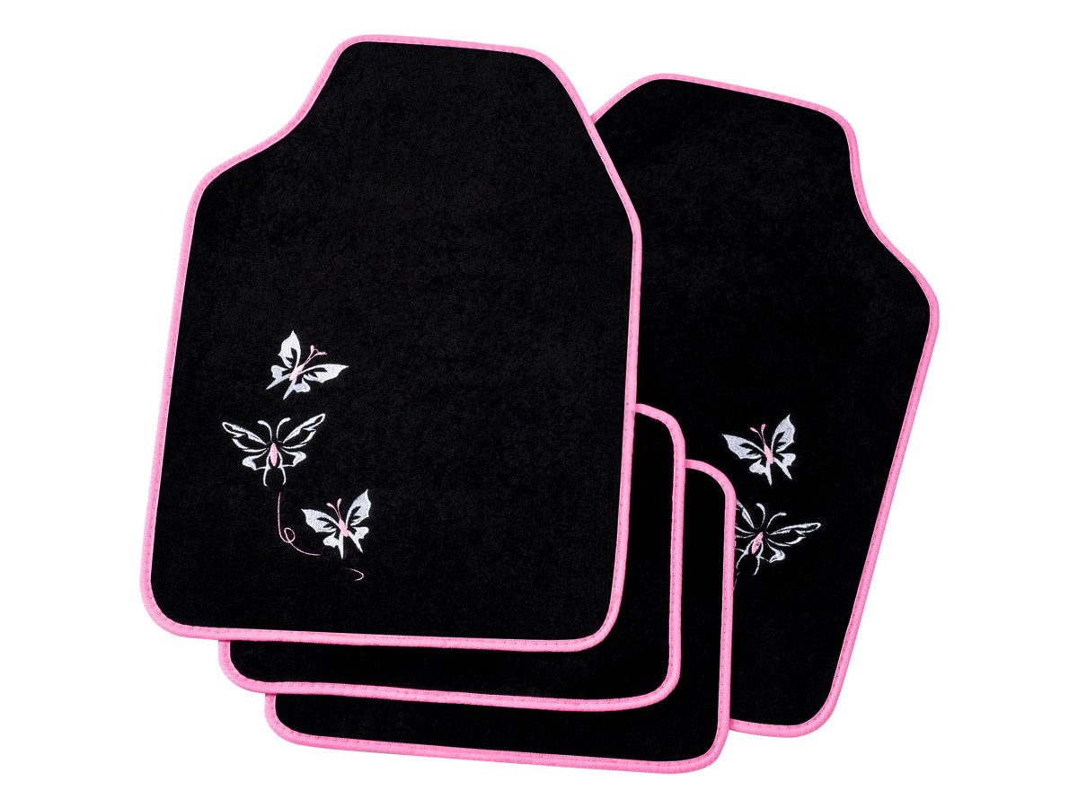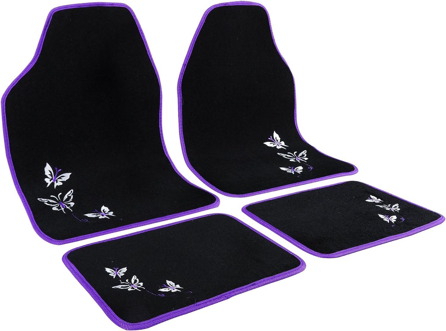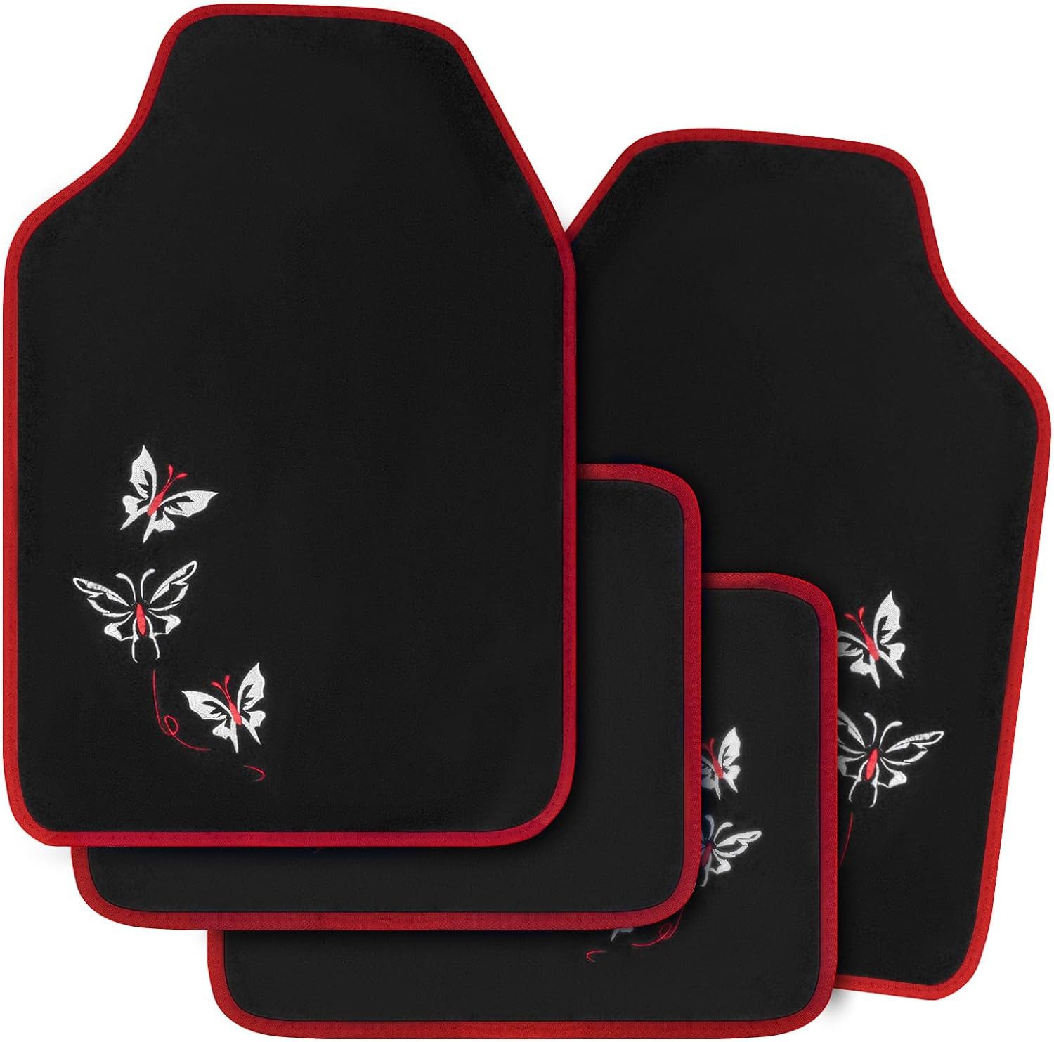 Stickmuster: Mit einem hübschen Schmetterlings-Stickmuster sieht das universelle Automatten-Set modern und elegant aus und verleiht Ihrem Autoinnenraum etwas Besonderes.