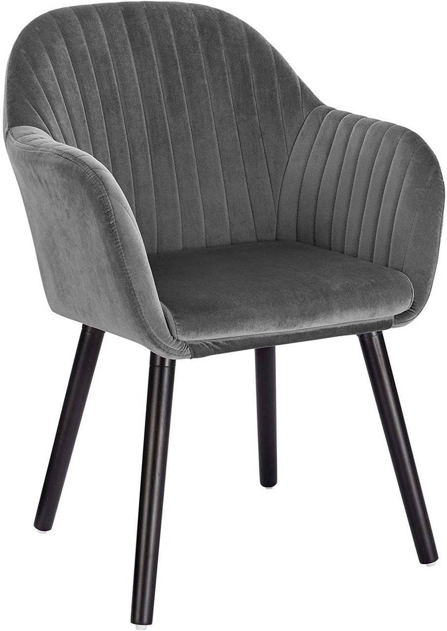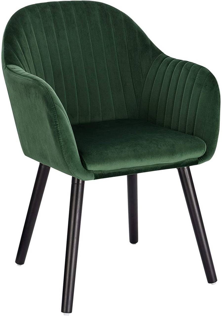 Der Stuhl verfügt über eine strapazierfähige Samt-Oberfläche, eine hochverdichtete Schaumstoffpolsterung, ein gekreuztes Metallgestell und robuste Massivholzbeine. All dies trägt zu einer hohen Stabilität und Langlebigkeit bei. Maximale statische Belastbarkeit: 120 kg.
