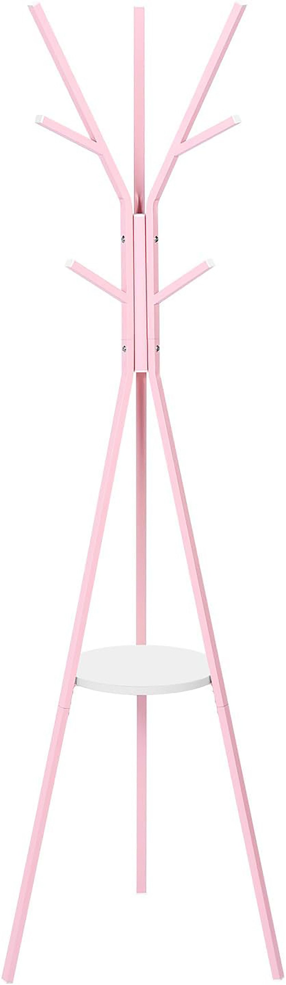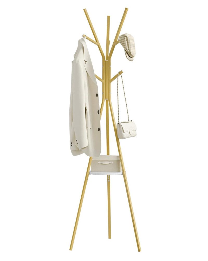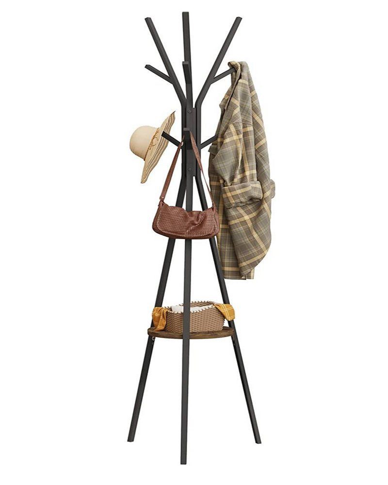 HOHE STABILITÄT: Die Dreibeinform dieses Garderobenständers folgt dem Prinzip der Dreiecksstabilität, und die Einlegeböden bieten zusätzlichen Stauraum und erhöhen die Stabilität des Ständers zusätzlich.