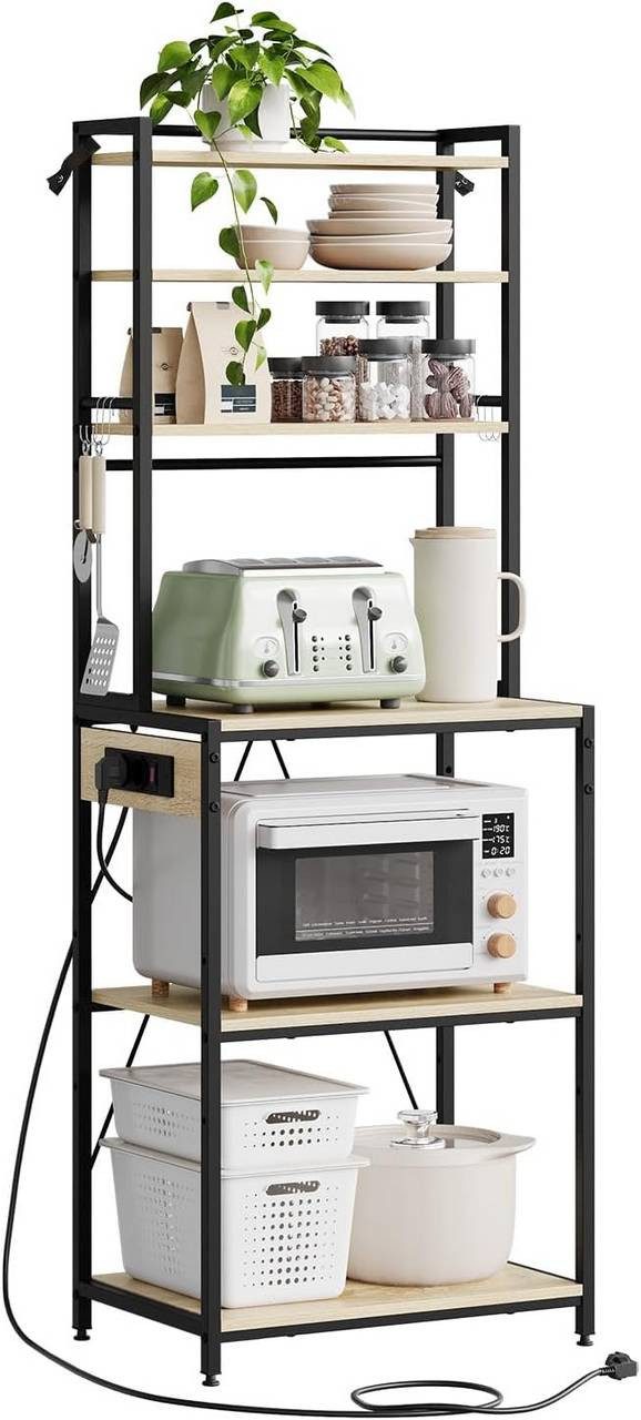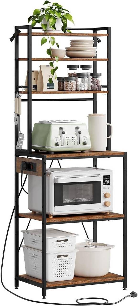 KÜCHENREGAL MIT STECKDOSEN: Das Küchenregal verfügt über eine Steckdosenleiste mit 3 AC-Steckdosen, ein 1,5 m langes Stromkabel und einen Überlastungsschutzschalter für den sicheren Gebrauch. Kombiniert mit offenen Regalen ist es ein perfekter Mini-Küchenarbeitsplatz oder eine Kaffeebar-Station.