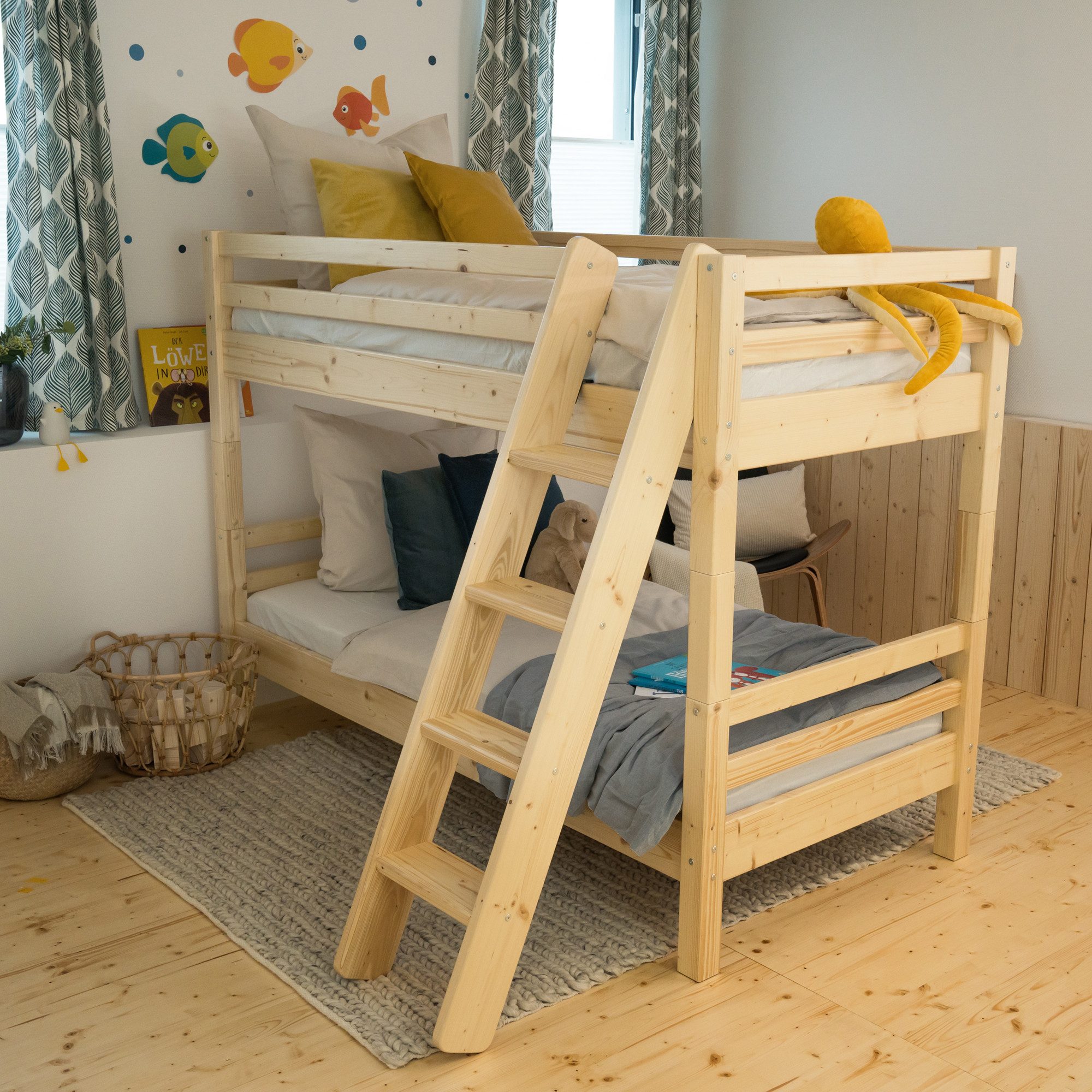 Entdecken Sie das vielseitige WOMONY Etagenbett, ein Begleiter, der mit Ihren Kindern wächst und sich Ihren Bedürfnissen anpasst! Aus hochwertigem Massivholz gefertigt, bietet es nicht nur natürliche Schönheit, sondern wirkt sich auch positiv auf das Raumklima aus und verbessert die Luftqualität in Ihrem Schlafbereich.