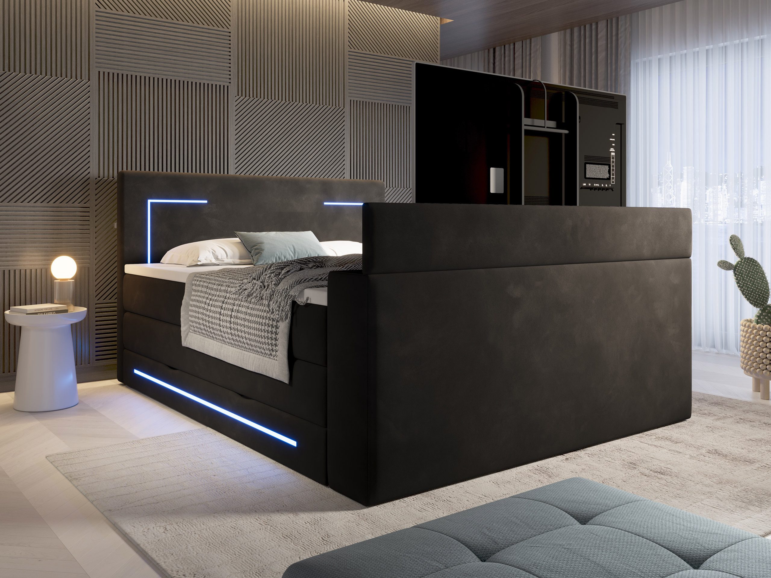Ausstattung | mit Bettkasten mit LED-Beleuchtung Samt mit TV-Lift beleuchtet |
