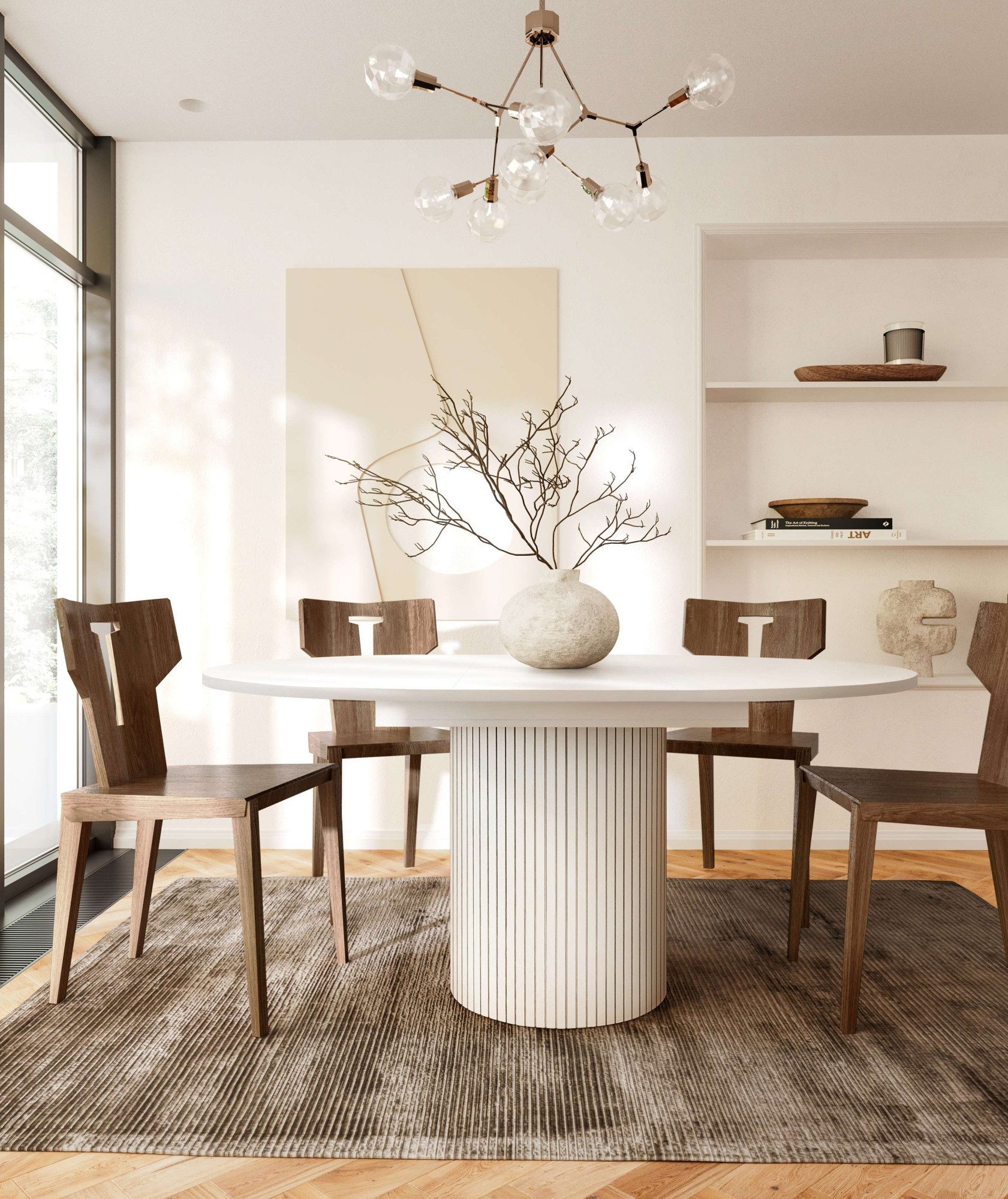 Um den eleganten Stil des Esstischs zu ergänzen, eignen sich beispielsweise dunkle Hölzer und Materialien wie Messing, Kupfer oder Gold. Ein Gesteck aus frischen oder künstlichen Blumen in einer extravaganten Vase ist eine stimmige Ergänzung. Der Tisch gehört zur Toscana Serie, die weitere Artikel in diesem Stil enthält. Auch so kannst du ein harmonisches Gesamtbild zaubern.