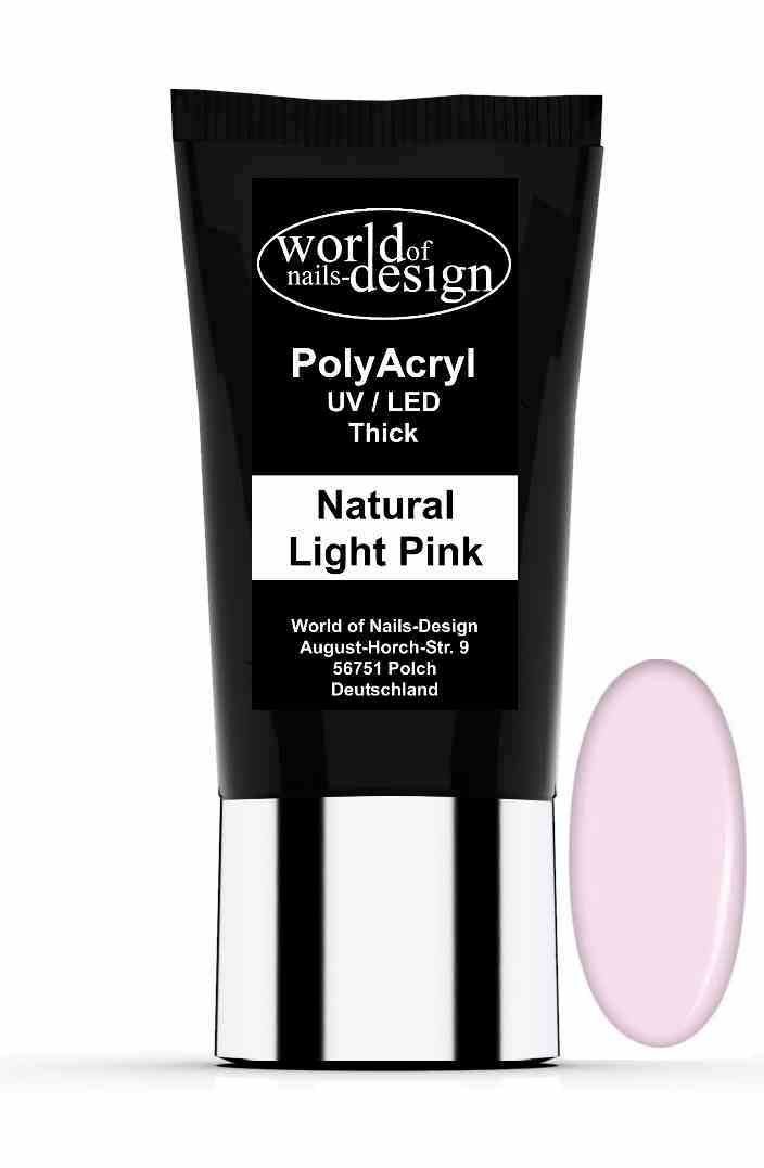 Anwendung | PolyAcryl-Gel: Nägel wie gewohnt vorbereiten, Primer oder Haftgel auftragen, Primer in der Luft trocknen, Bonding-Gel in UV-Lampe (2 Minuten) oder in LED-Lampe (90 Sekunden) aushärten. Die gewünschte Menge PolyAcryl-Gel aus dem Tiegel entnehmen und mit einem Metallspachtel auf dem Nagel auftragen. Den Pinsel mit Cleaner (99,9%ig) nass machen. Das PolyAcryl-Gel mit nassem Pinsel in Form bringen. Im UV (2 Minuten) oder in LED (90 Sekunden 24 Watt, 395nm) aushärten und in Form feilen. |