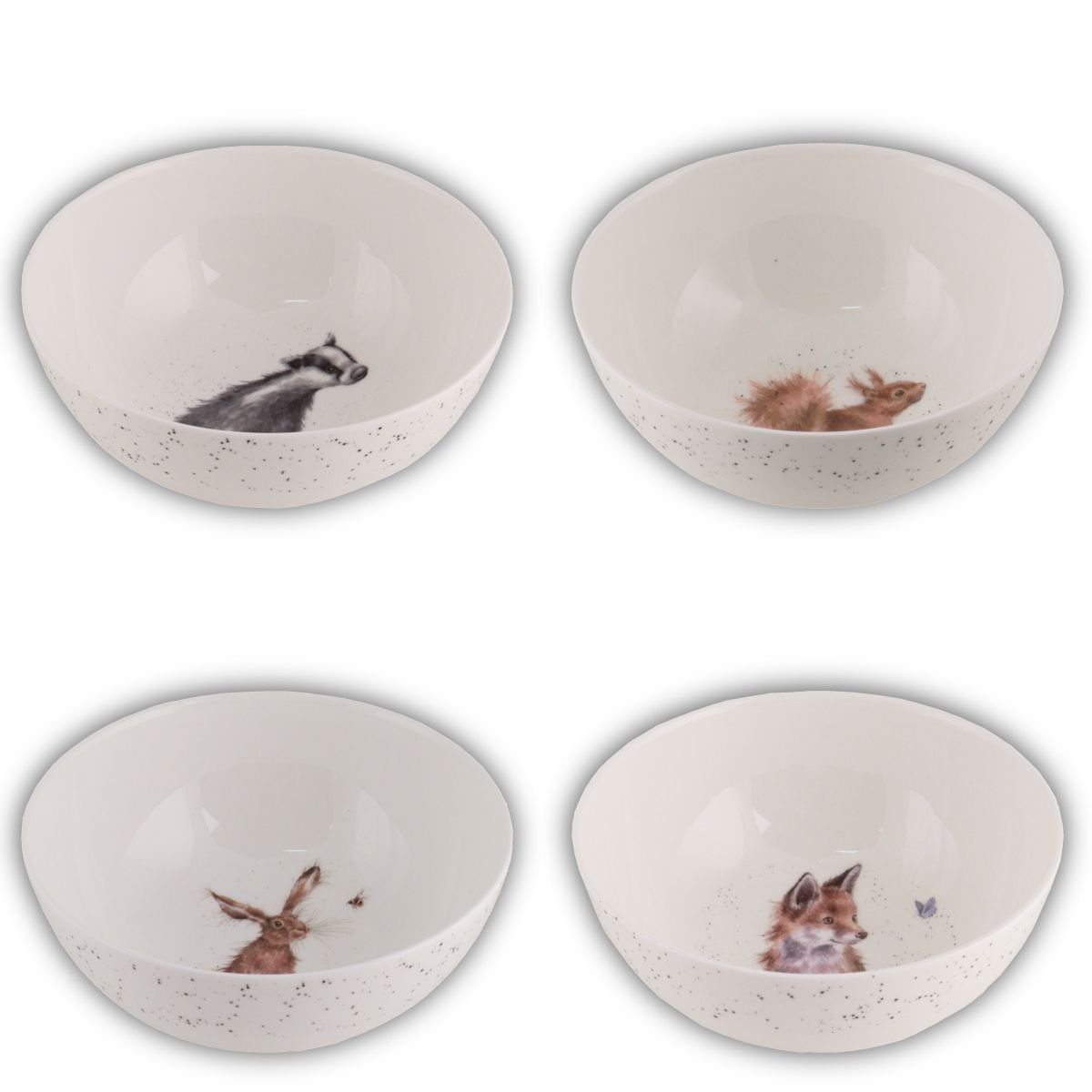 Wrendale Designs Porzellan Müsli Schalen 4er-Set: Hase, Fuchs, Eichhörnchen, Dachs Wildtier-Abenteuer für Zuhause! Der unternehmungslustige Dachs, der neugierige Fuchs, das possierliche Eichhörnchen und der vorwitzige Hase geben ein Stelldichein - gewohnt herrlich illustriert von der preisgekrönten, englischen Künstlerin Hannah Dale. Material: Porzellan | Fine Bone China Maße je Schale: ca. 15,5 cm x 7 cm (DxH) Füllmenge je Schale: ca. 536 ml Hinweis: die Schalen sind spülmaschinenfest und mikrowellengeeignet | das Motiv stammt von der britischen Künstlerin Hannah Dale Dieses Angebot gilt für ein 4-teiliges Wrendale Designs Porzellan Müsli Schalen Set tief, Motive: 1x Hase, 1x Fuchs, 1x Eichhörnchen, 1x Dachs, Artikel WP-WNET4311-XB, ohne Deko oder sonstigem Zubehör.