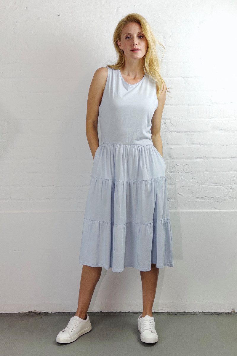 Entspannt durch die heißen Tage in diesem luftigen Sommerkleid. Das schlichte ärmellose Oberteil erhält durch den locker schwingenden Stufenrock einen verspielt femininen Look. Superpraktisch sind auch die seitlichen Eingrifftaschen. Der traumhaft weiche und leichte Materialmix aus 50% Modal (Edelweiß) und 50% Biobaumwolle liegt sanft auf der Haut.