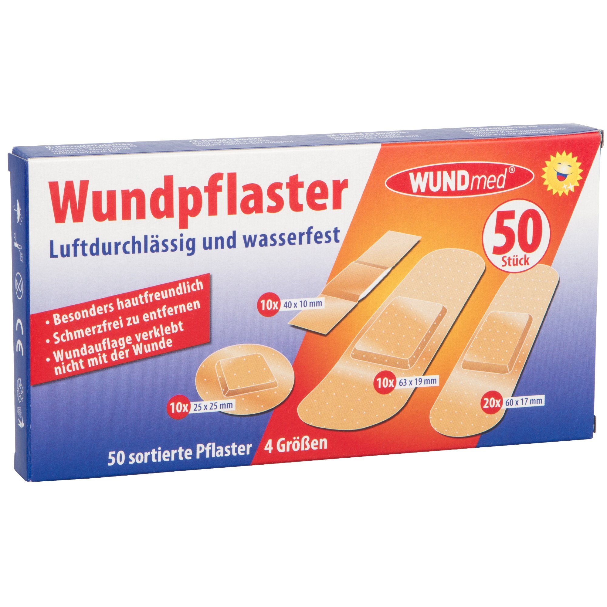 Die Wundpflaster von WUNDmed® eignen sich zur Abdeckung von kleinen, oberflächlichen Wunden. Die wasserfesten Pflaster sind hautfreundlich und luftdurchlässig, verkleben nicht mit der Wundstelle und lassen sich nach Gebrauch wieder schmerzfrei entfernen. Dieses Pflasterset enthält 50 Wundpflaster in 4 Größen.
