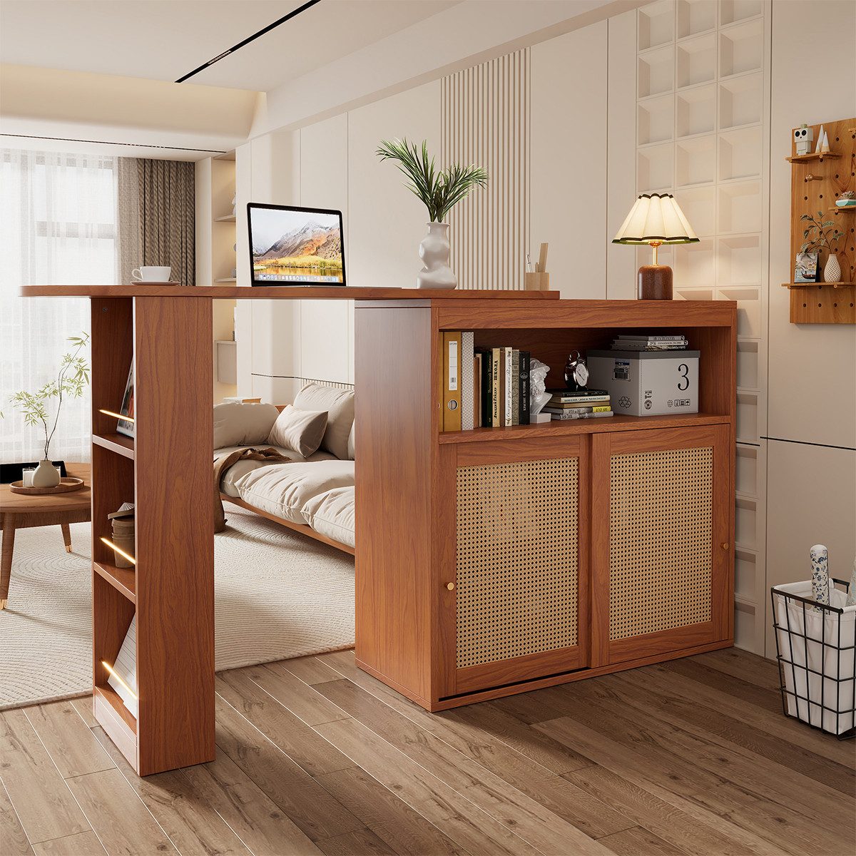 Rattan-Handwerk:Die Schranktür ist aus exquisitem Rattan gefertigt. Diese traditionelle Technik verleiht dem Esstisch nicht nur eine einzigartige Textur und eine warme, natürliche Atmosphäre, sondern zeigt auch die Feinheit und Eleganz des Handwerks.