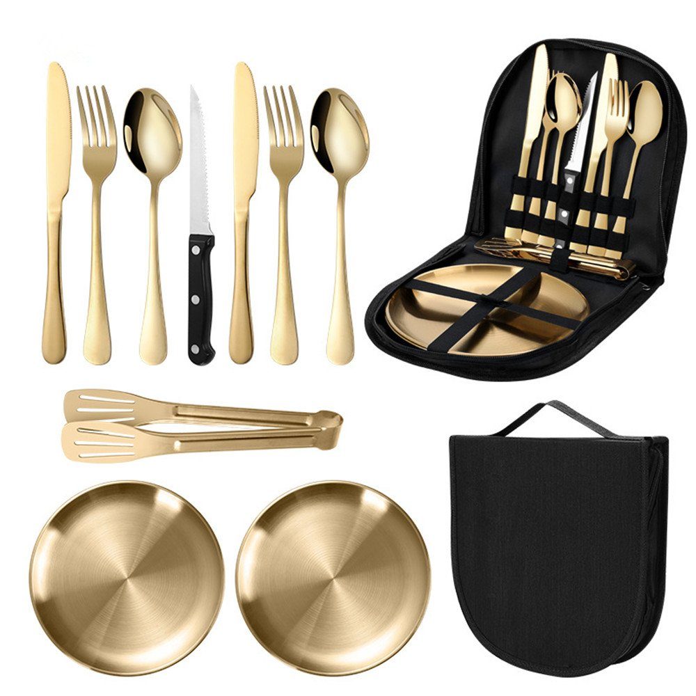 Camping-Besteck-Set - Das gesamte Geschirr wird in einer Tasche aufbewahrt, wodurch Zeit für die Organisation des Geschirrs gespart wird.