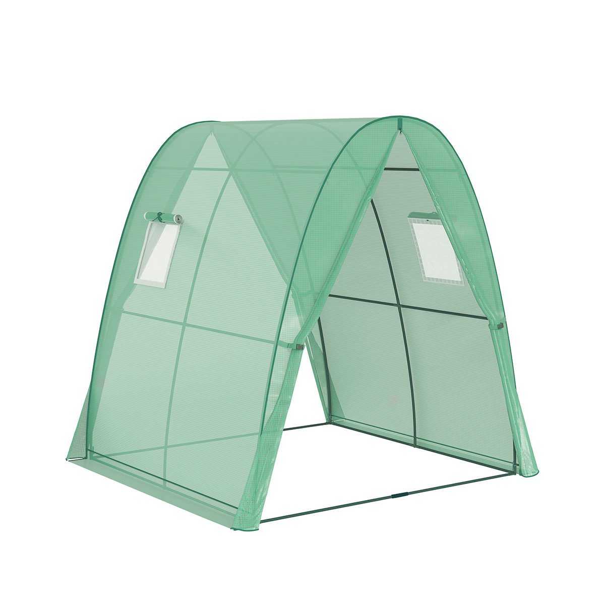 Einfacher Zugang und Belüftung: Mit zwei Reißverschlusstüren an Vorder- und Rückseite ermöglicht das Gewächshaus einen leichten Zugang für die Pflege der Pflanzen. Die beiden seitlichen Netzfenster sorgen für Belüftung und verbessern die Luftzirkulation