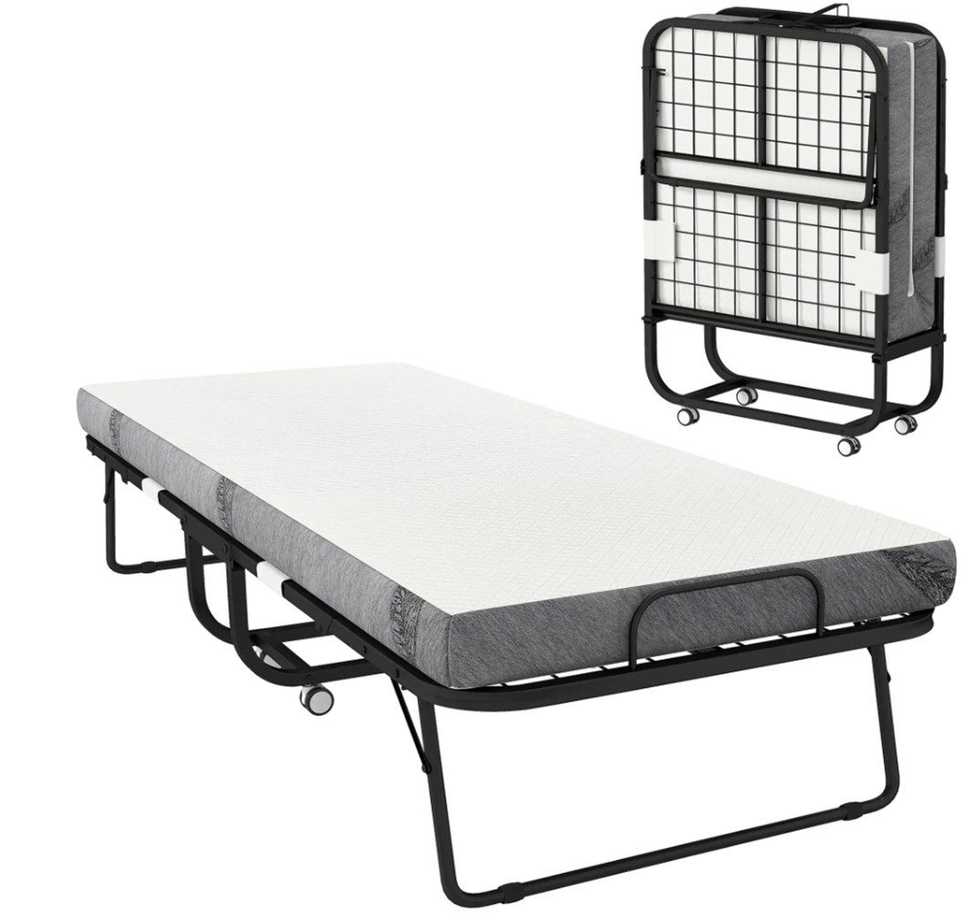 Platzsparend: Das Klappbett überwindet die Unzulänglichkeiten herkömmlicher Matratzen, die groß sind und sich nicht leicht verstauen lassen. Wenn es nicht benutzt wird, kann es einfach in der Mitte gefaltet und platzsparend verstaut werden.