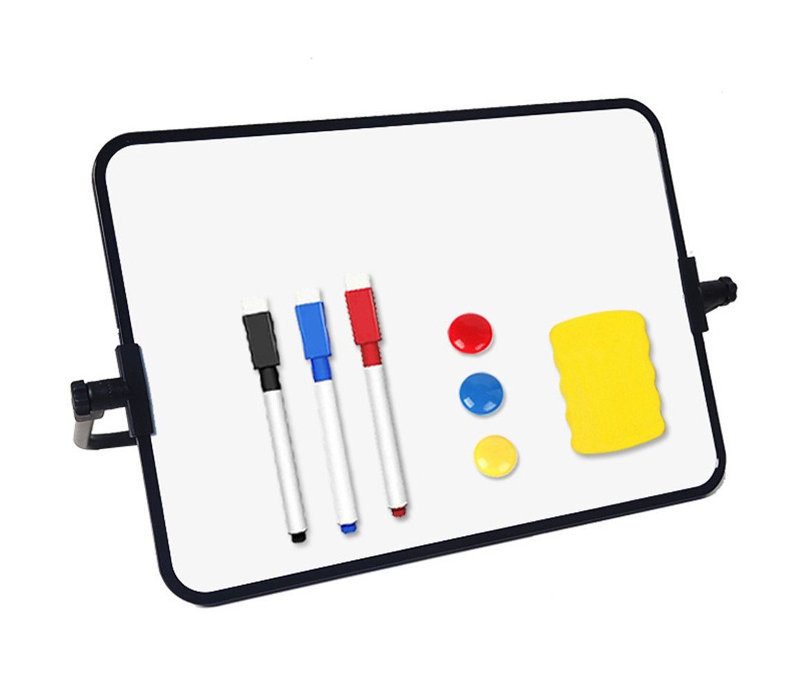 Leicht zu schreiben und zu reinigen: Jedes Whiteboard wird mit einer Stützhalterung geliefert, die für den täglichen Gebrauch gut auf dem Schreibtisch gestützt werden kann. Ausgestattet mit Whiteboard-Stiften und einem Whiteboard-Radierer. Die Whiteboard-Marker sind leicht zu verwenden, sodass Sie problemlos unterrichten können. Ein Whiteboard-Radierer erleichtert die Reinigung oder Sie können es mit einem trockenen Tuch abwischen.