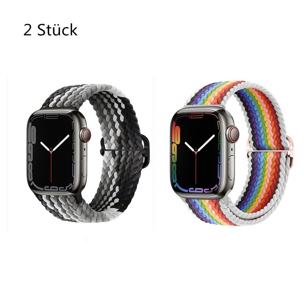 Dieses gewebte Nylon-Stretch sportarmband ist kompatibel mit iWatch 7 6 5 4 3 2 1, 38/40/41mm und 42/44/45mm.
