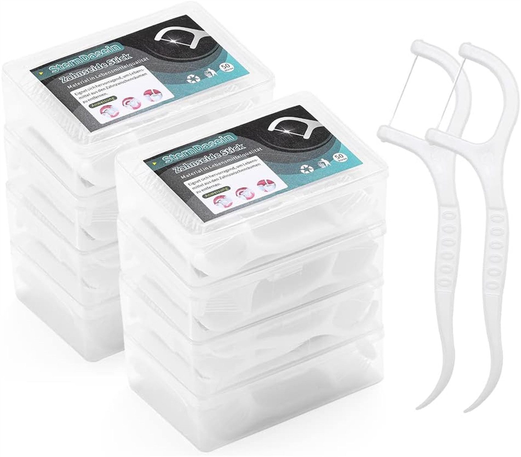 Wissenschaftliches Design: die Spitze der Zahnseidensticks ist ein Zahnstocher, es kann größere Ablagerungen mit der Zahnseide reinigen, der mittlere Teil hat ein konvexes Design, um das Handgefühl zu verbessern, Ermüdung zu vermeiden und die Zähne zu schützen.