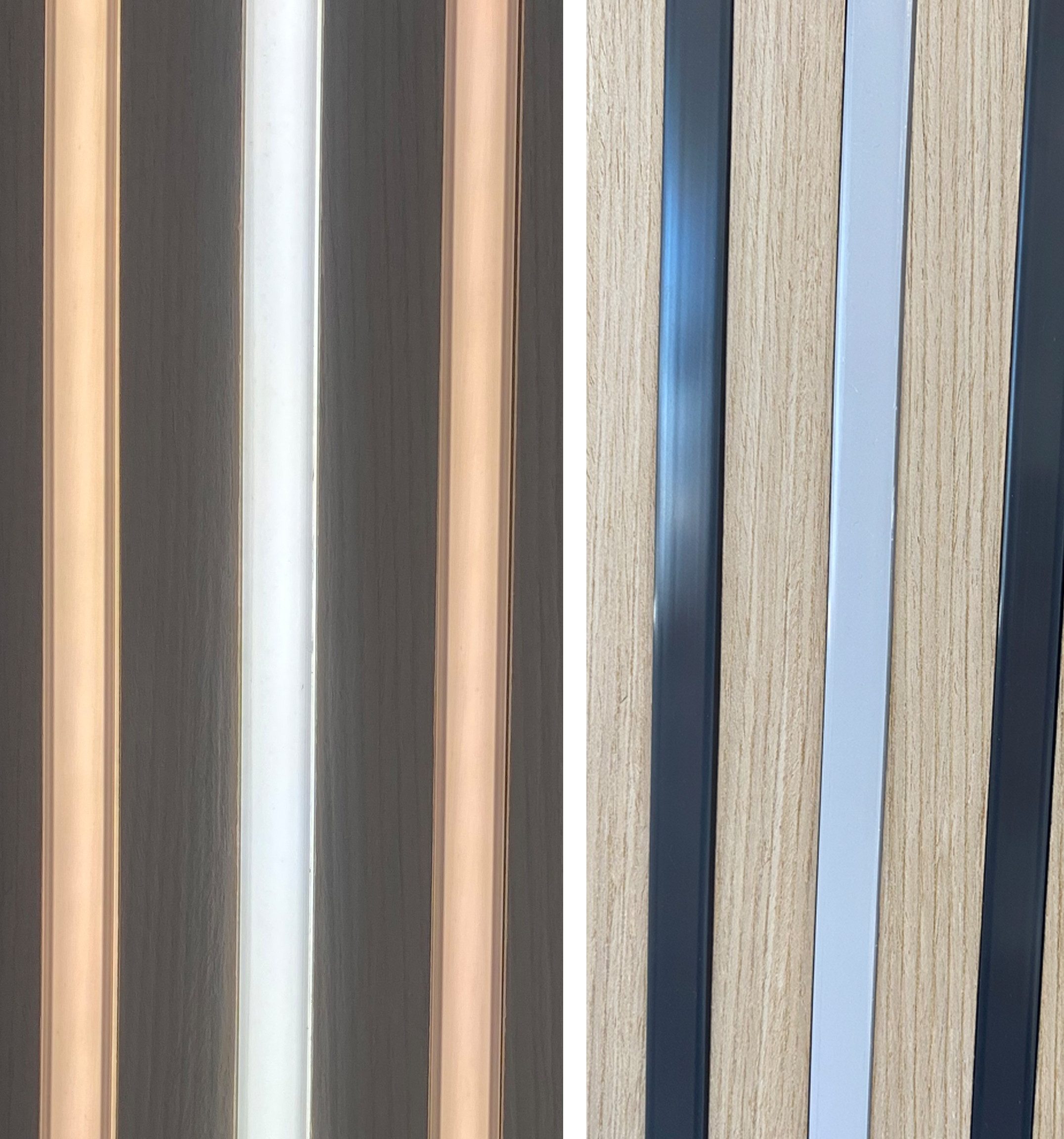 LED Leuchte mit 16 Kunststoffschienen - Sie erhalten je Leuchte jeweils eine in weiß milchig und schwarz lichtdurchlässig. So können Sie wählen und kombinieren.