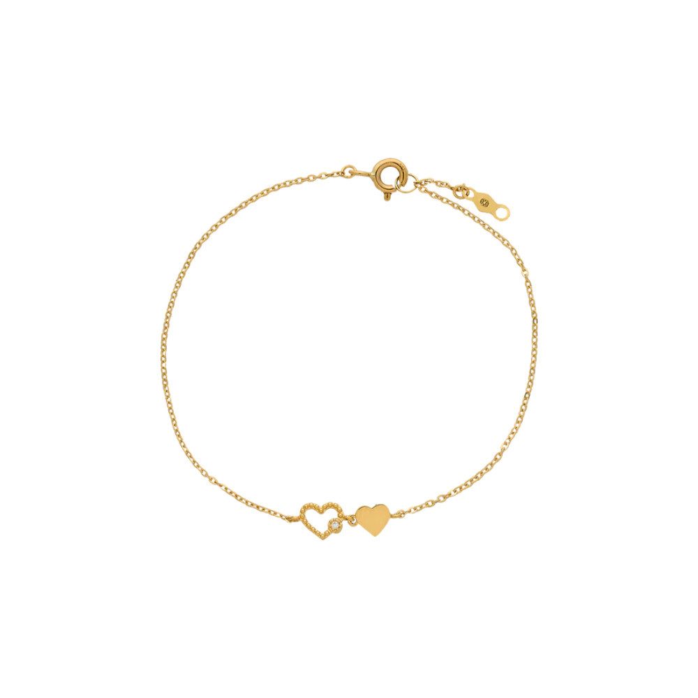 Das XENOX FINE Armband Herz 585/- gelbgold Zirkonia XG14K7027G verleiht deinem Look eine elegante und zugleich bedeutungsvolle Note. Gefertigt aus hochwertiger 585er Goldlegierung, schmücken zwei Herzen das filigrane Armband – eines klassisch poliert, das andere mit funkelnden Zirkoniasteinen besetzt. Mit einer Длина von 16 bis 18 cm, einem Gewicht von 0,81 g und einem sicheren Federringverschluss ist es ein stilvolles Schmuckstück, das sich vielseitig tragen lässt.